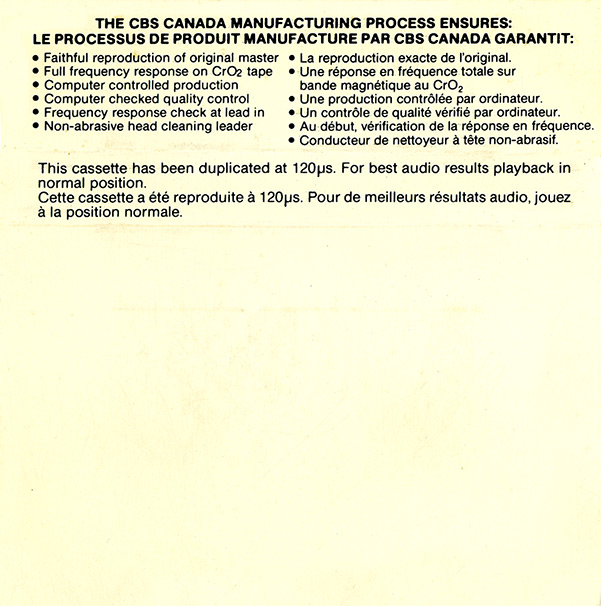 Release Information: Canadian double cassette issue on chromium dioxide tape.