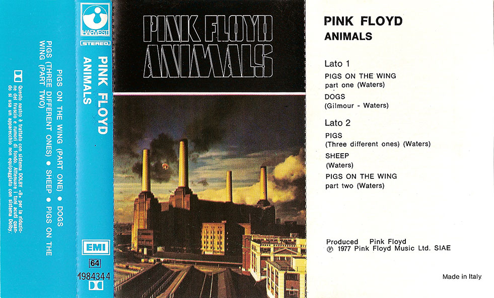 Cover: Pig on the wing over Battersea Power Station. Blue spine and back. Information in Italian about Dolby B on the back. Song listing on the inside. "Made in Italy" under the song listing.