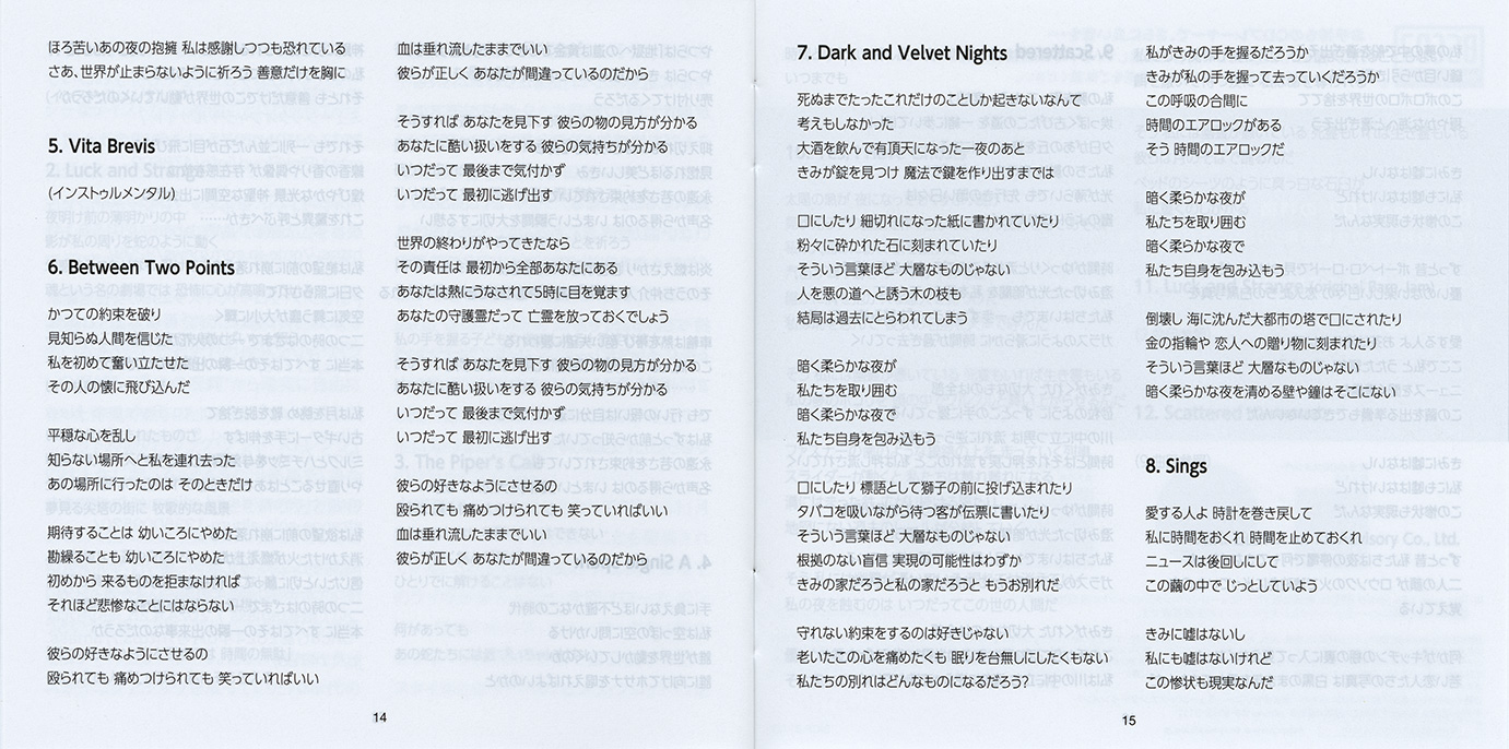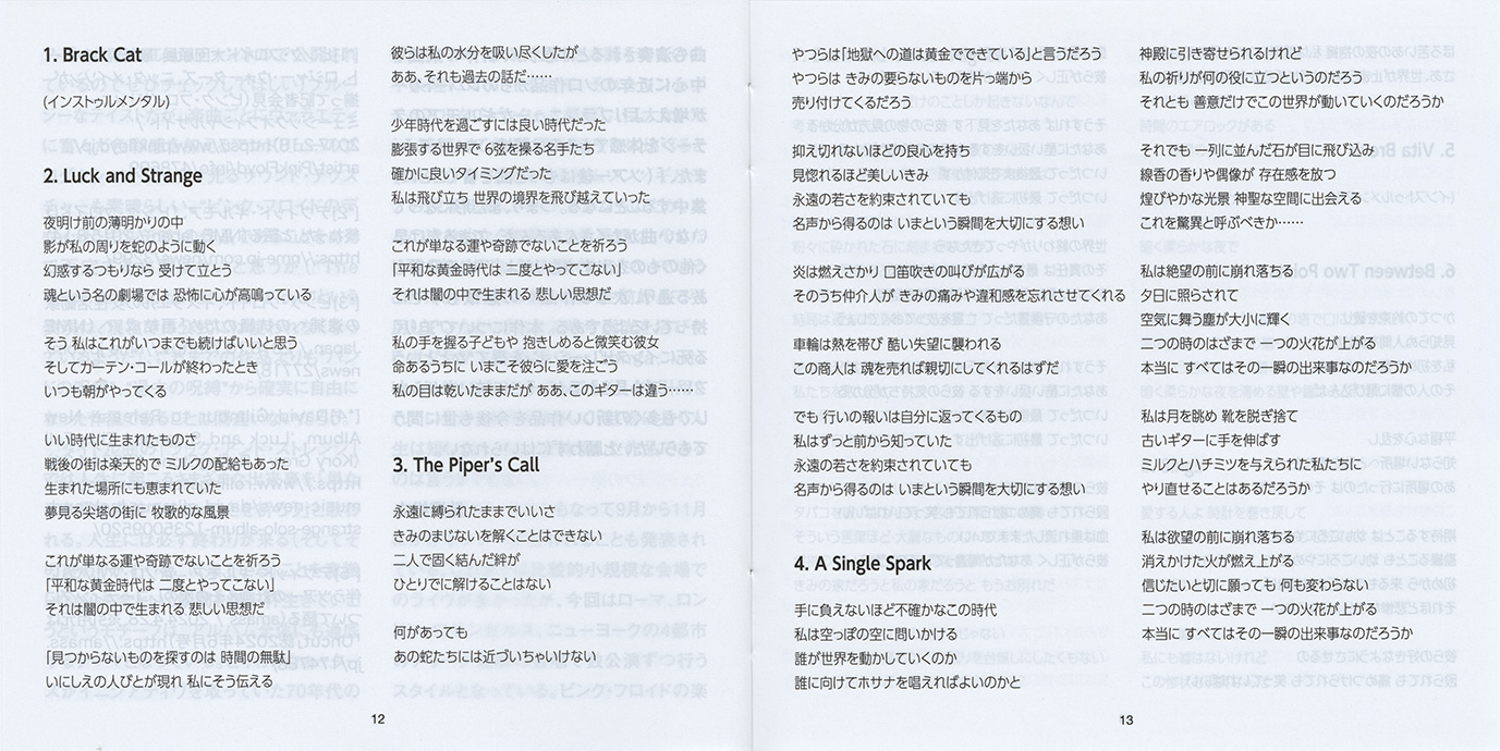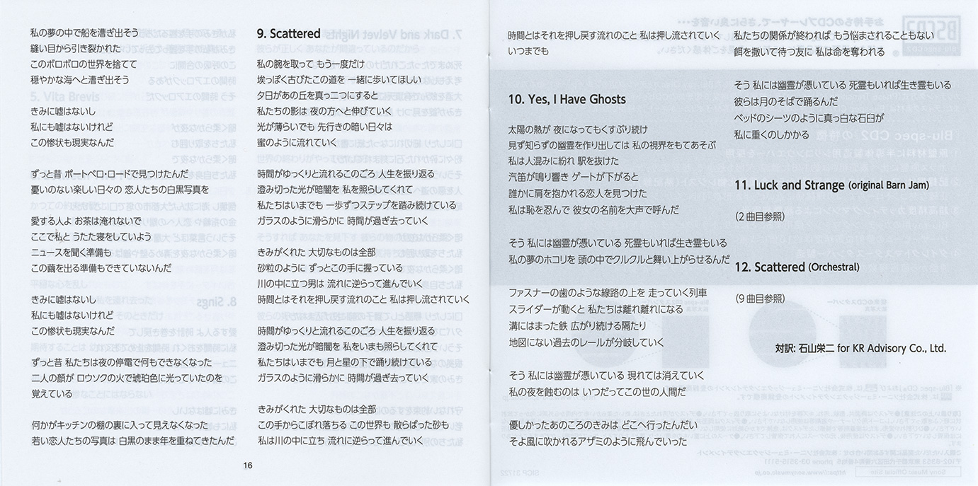 Japanese Booklet: 36 page Japanese booklet with Japanese text, and lyrics in English and Japanese.