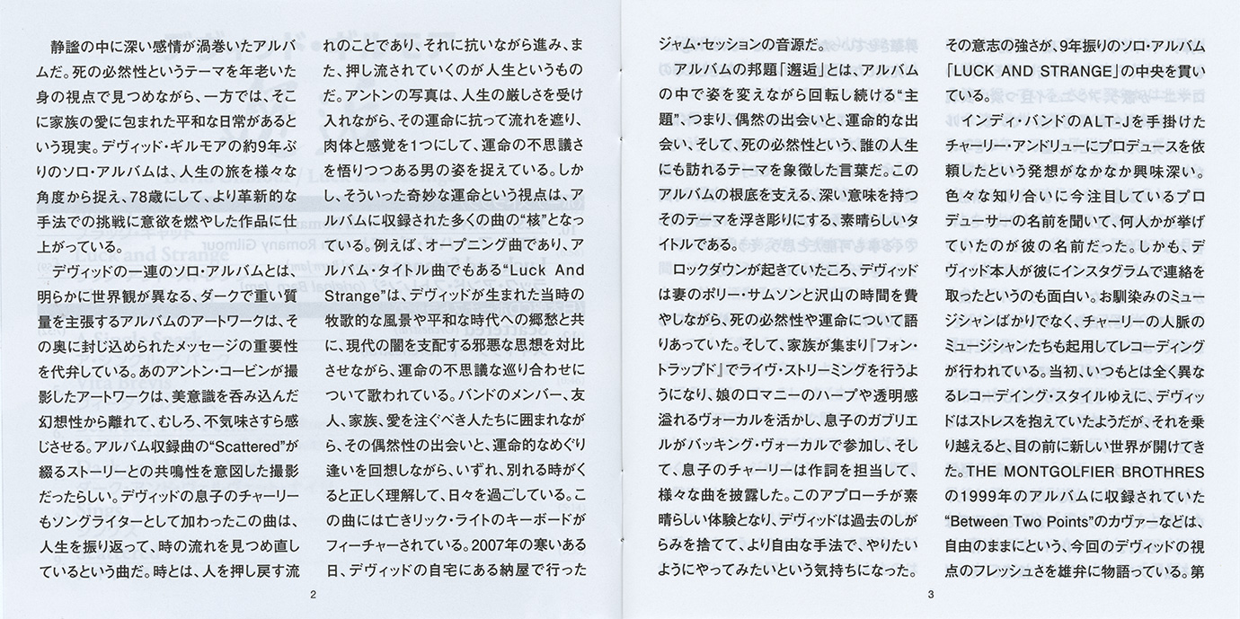 Title: David Gilmour - Luck and Strange (Sony Music Labels Inc. 2024 issue)
