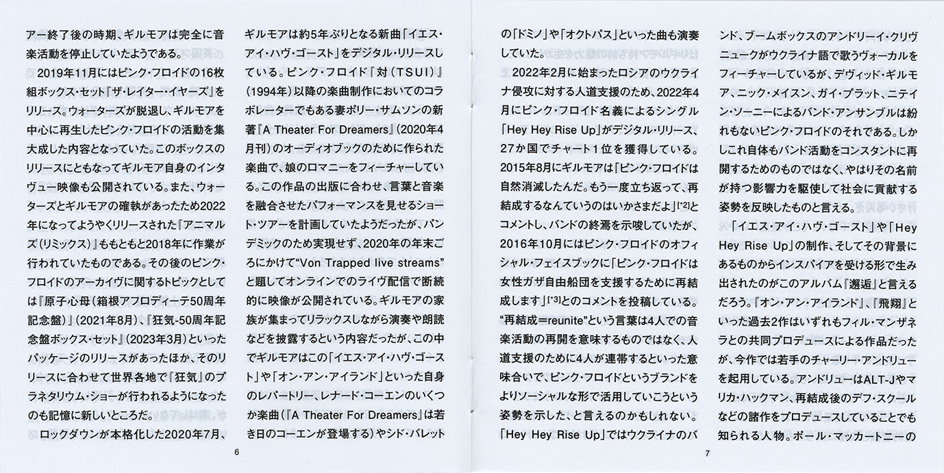Front Cover: A picture of David Gilmour. Title at top. 8-page booklet cover.