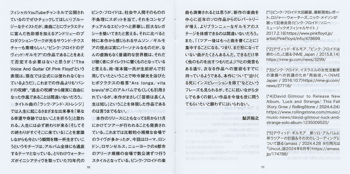 Front Cover: A picture of David Gilmour. Title at top. 4-page booklet cover.