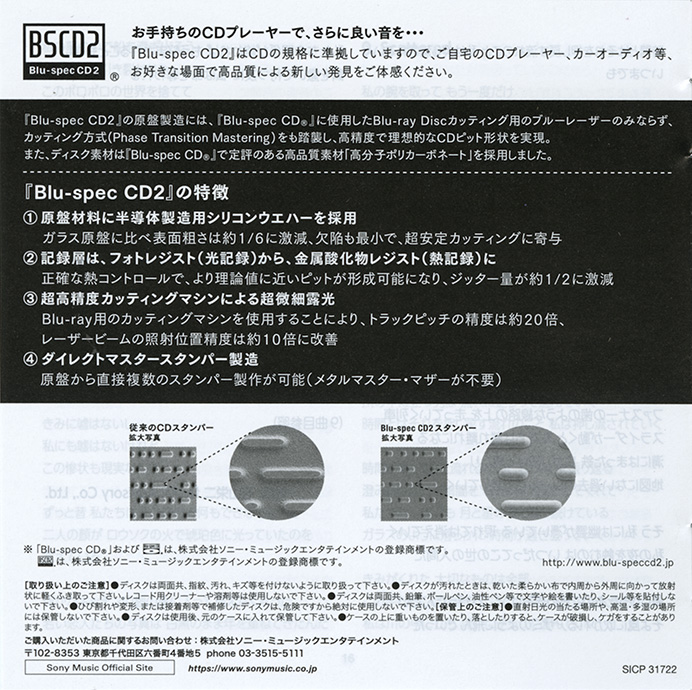 Release Information: Double CD Japanese issue on Blu-spec CD2.