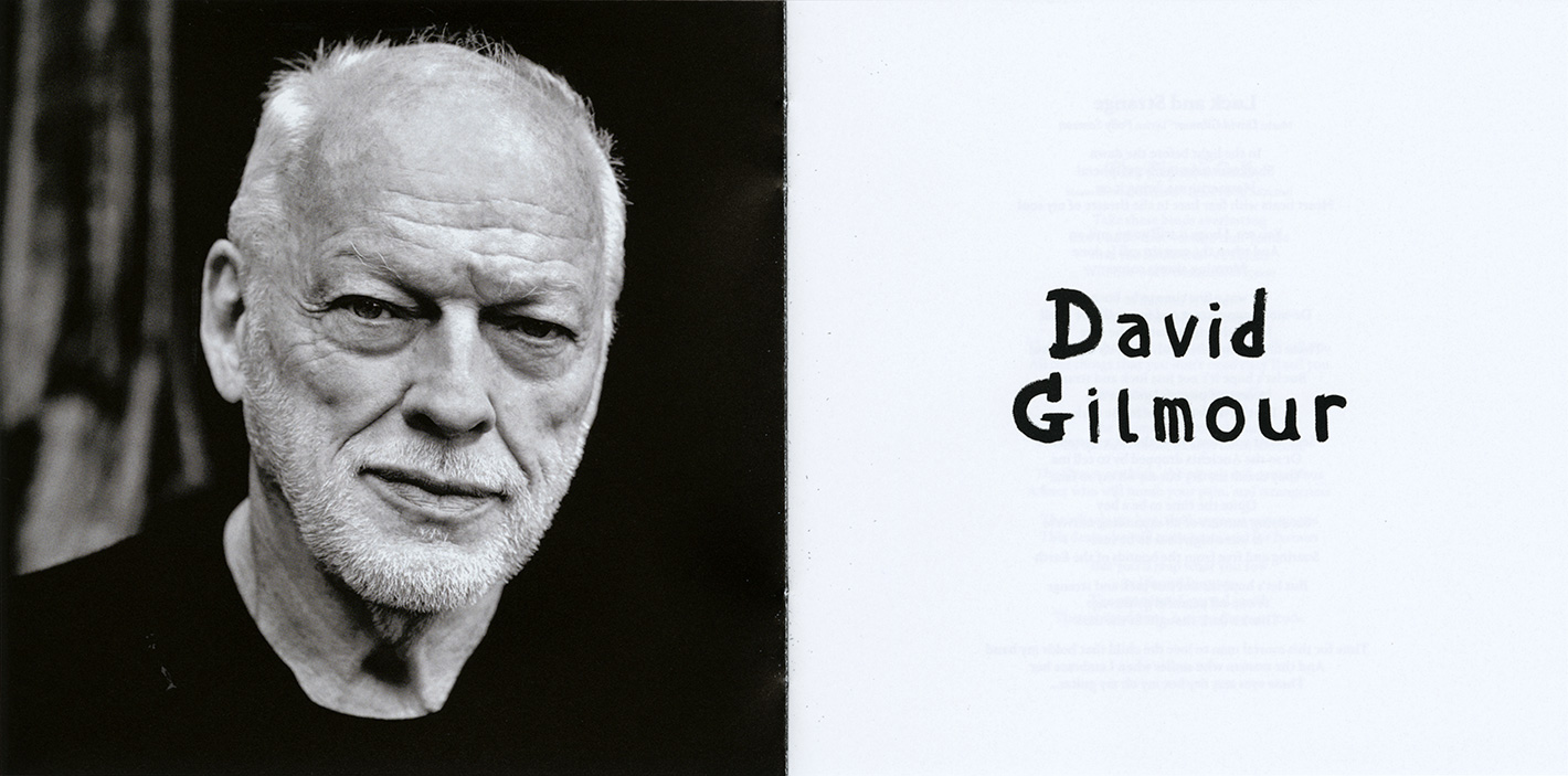 Front Cover: A picture of David Gilmour. Title at right. 12-page booklet cover.