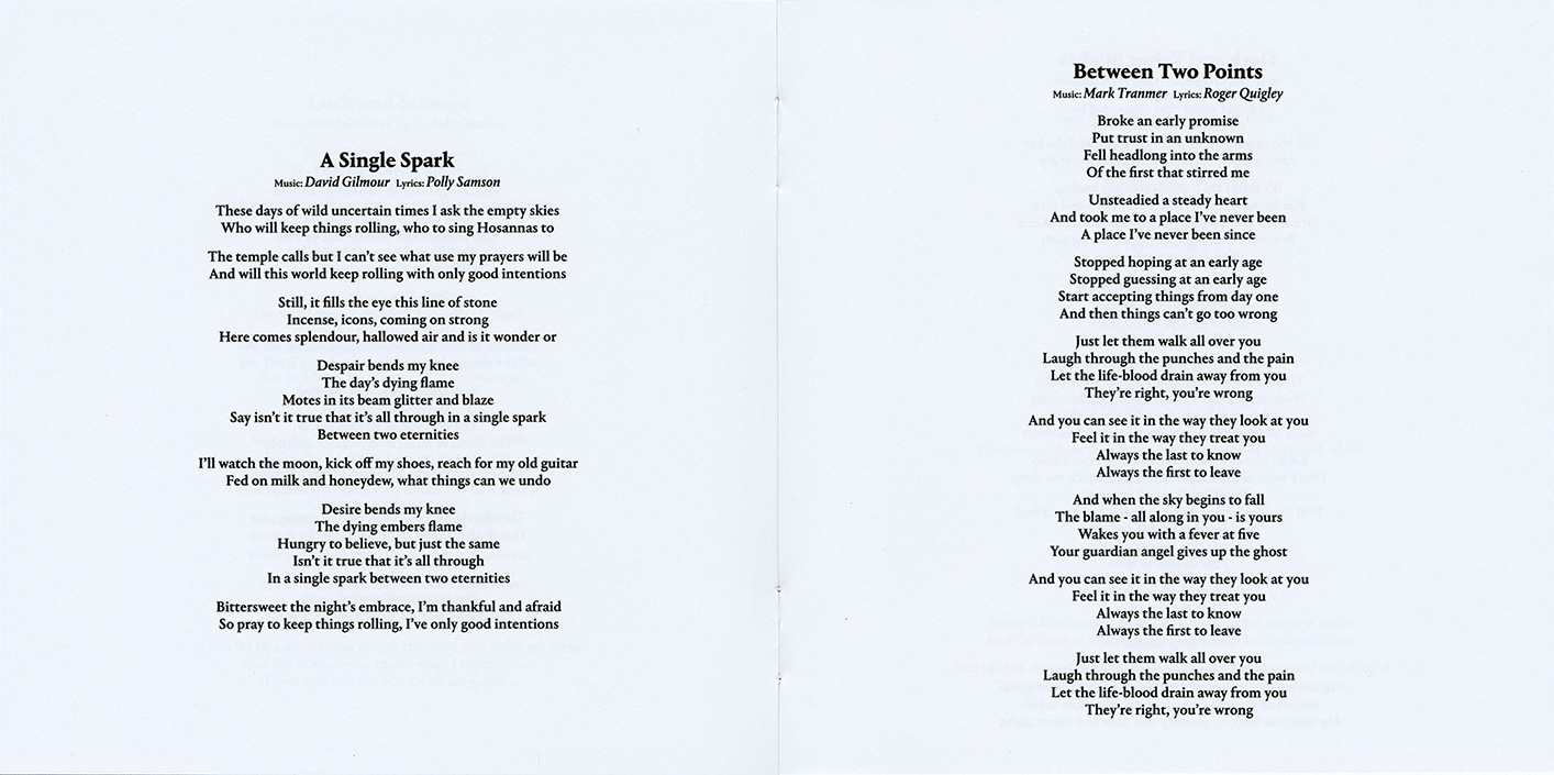 Sleeve: [front] [back] David Gilmour on the front. A bird in flight on the back.