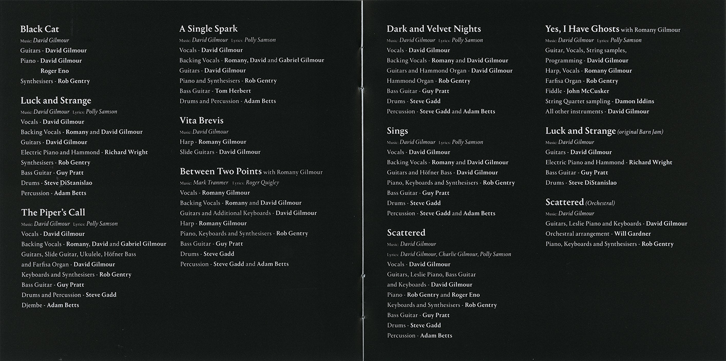 Back Cover: David Gilmour. Song titles. Credits. Bar code.