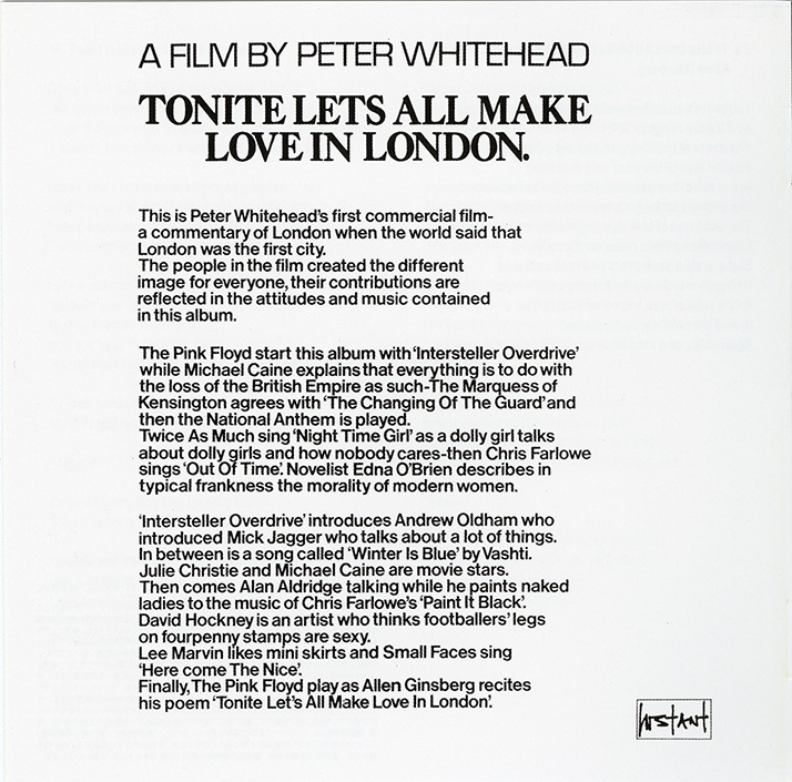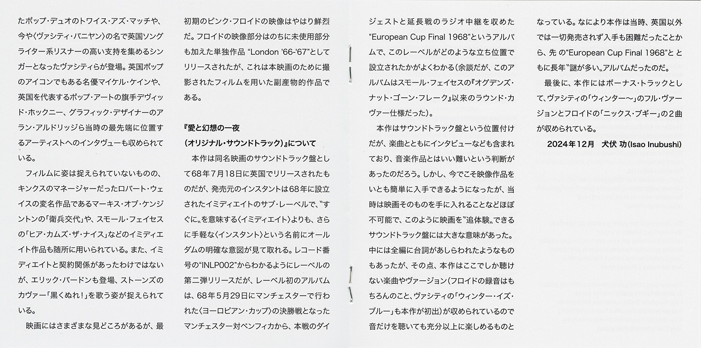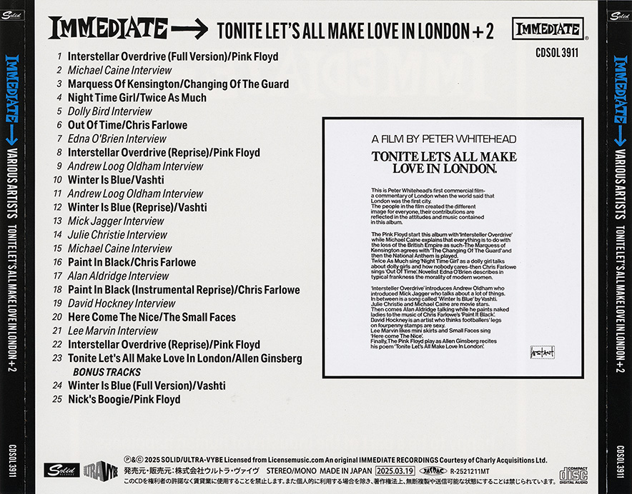 Release Information: Japanese CD issue of soundtrack album with additional songs. Manufactured and distributed by Teichiku Records Co., Ltd. Features the Pink Floyd songs Interstellar Overdrive, and Nick's Boogie.