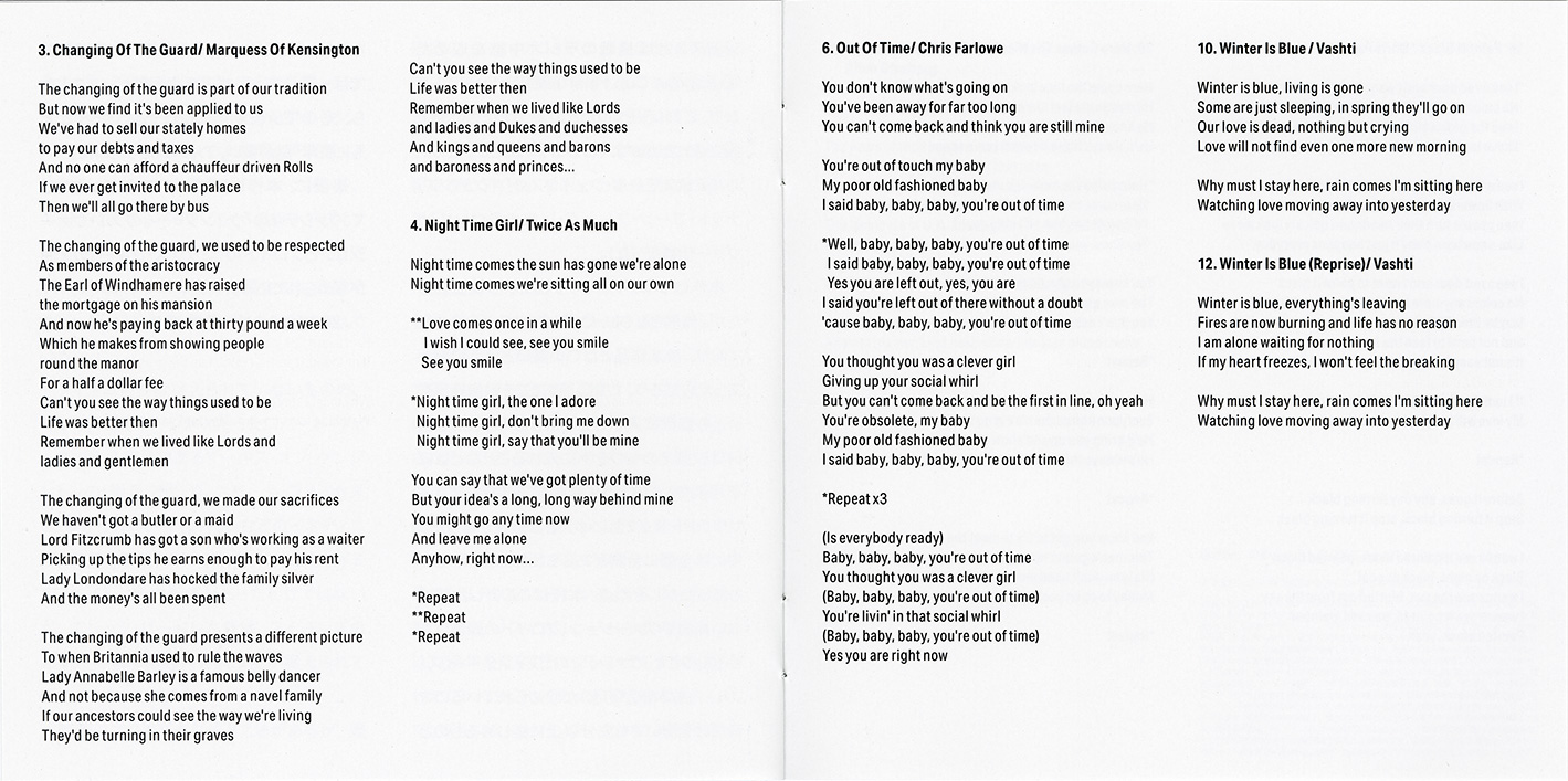 Booklet: [front] [2-3] [4-5] [6-7] [8-9] [10-11] [back] 12-page booklet with song listing, lyrics and information about each song in Japanese and English.