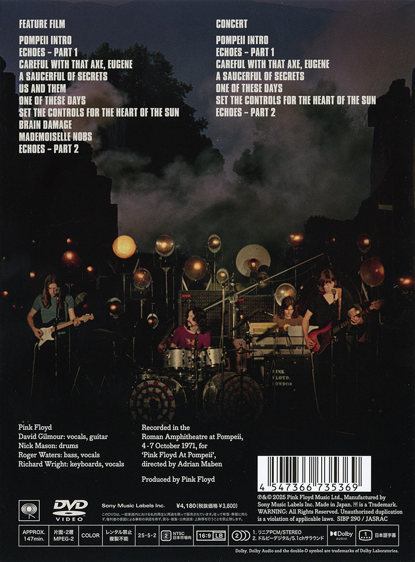 Release Information: Japanese DVD issue of the movie, Pink Floyd-Live at Pompeii.