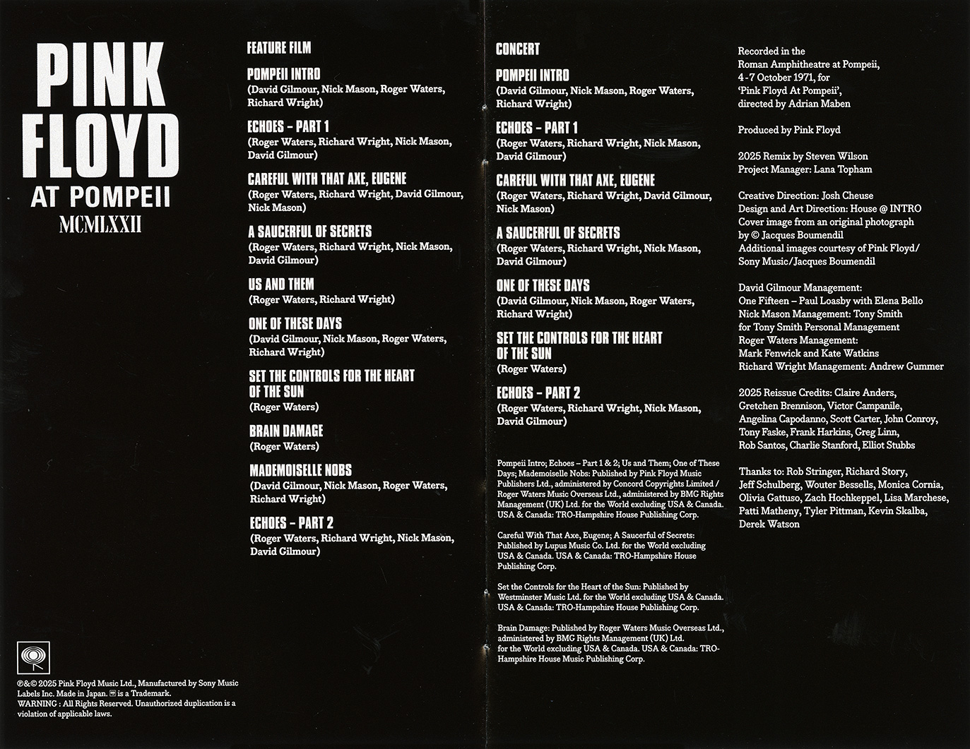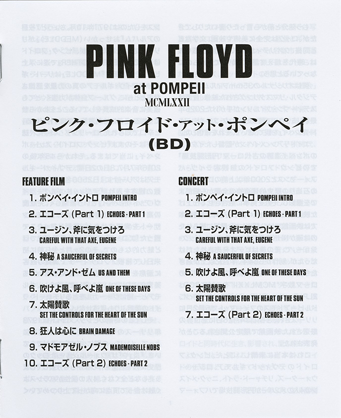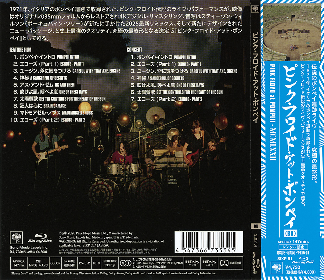 Release Information: Japanese blu-ray issue of the movie, Pink Floyd-Live at Pompeii.