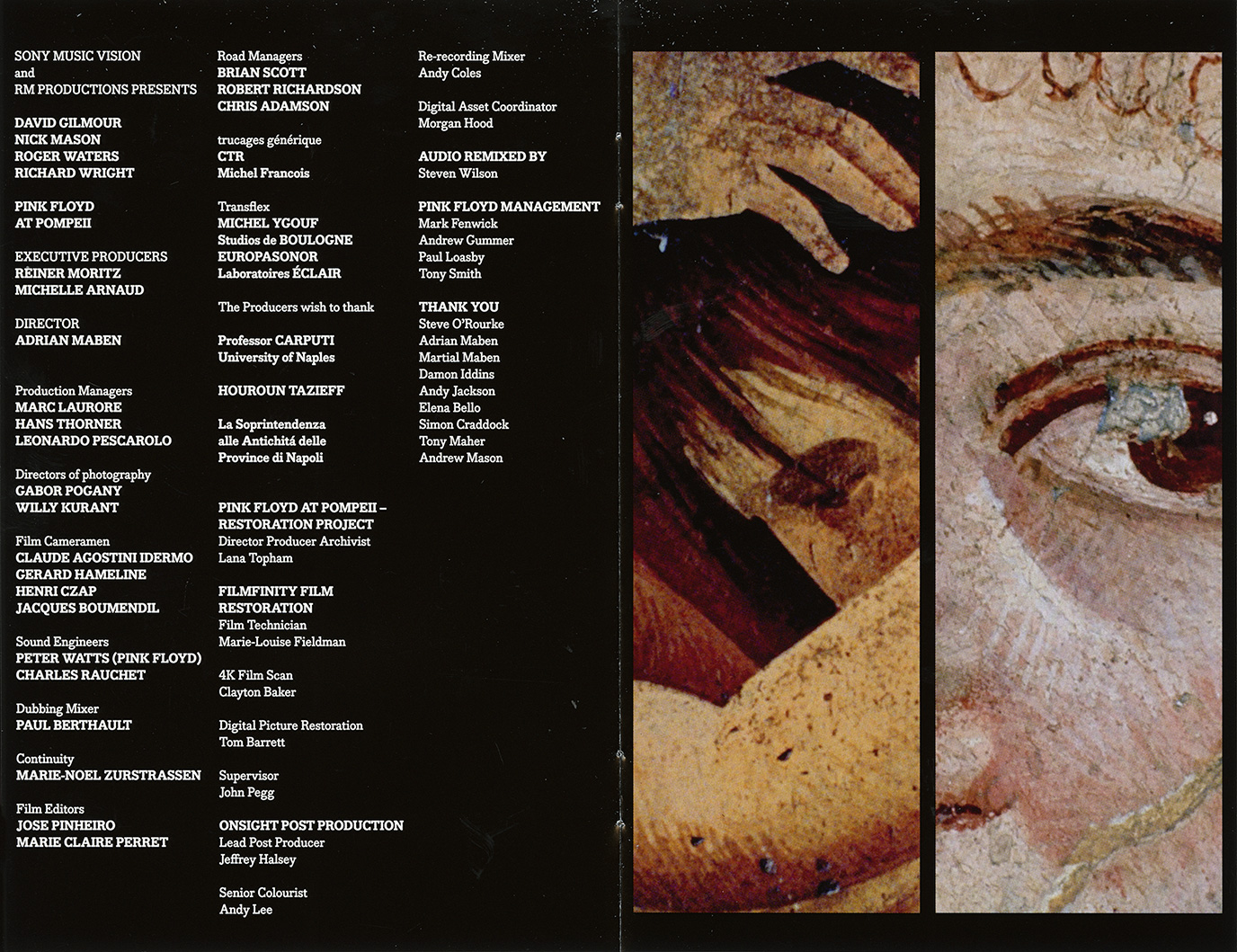 1) Booklet: [front] [2-3] [back] 4-page DVD booklet with the contents for Live at Pompeii.