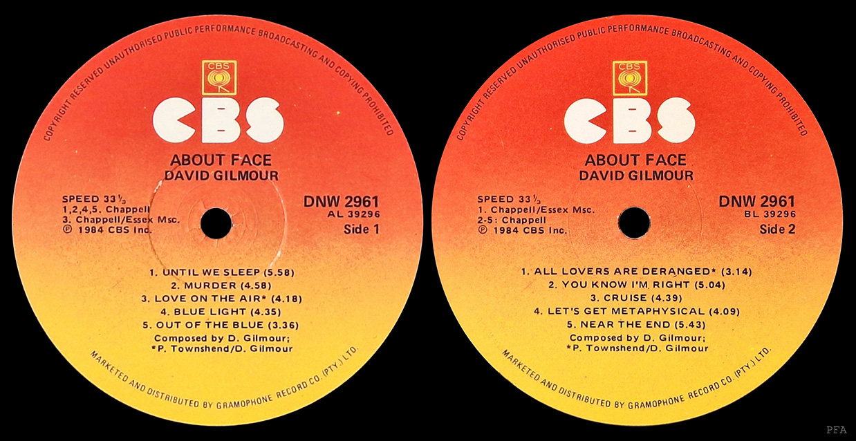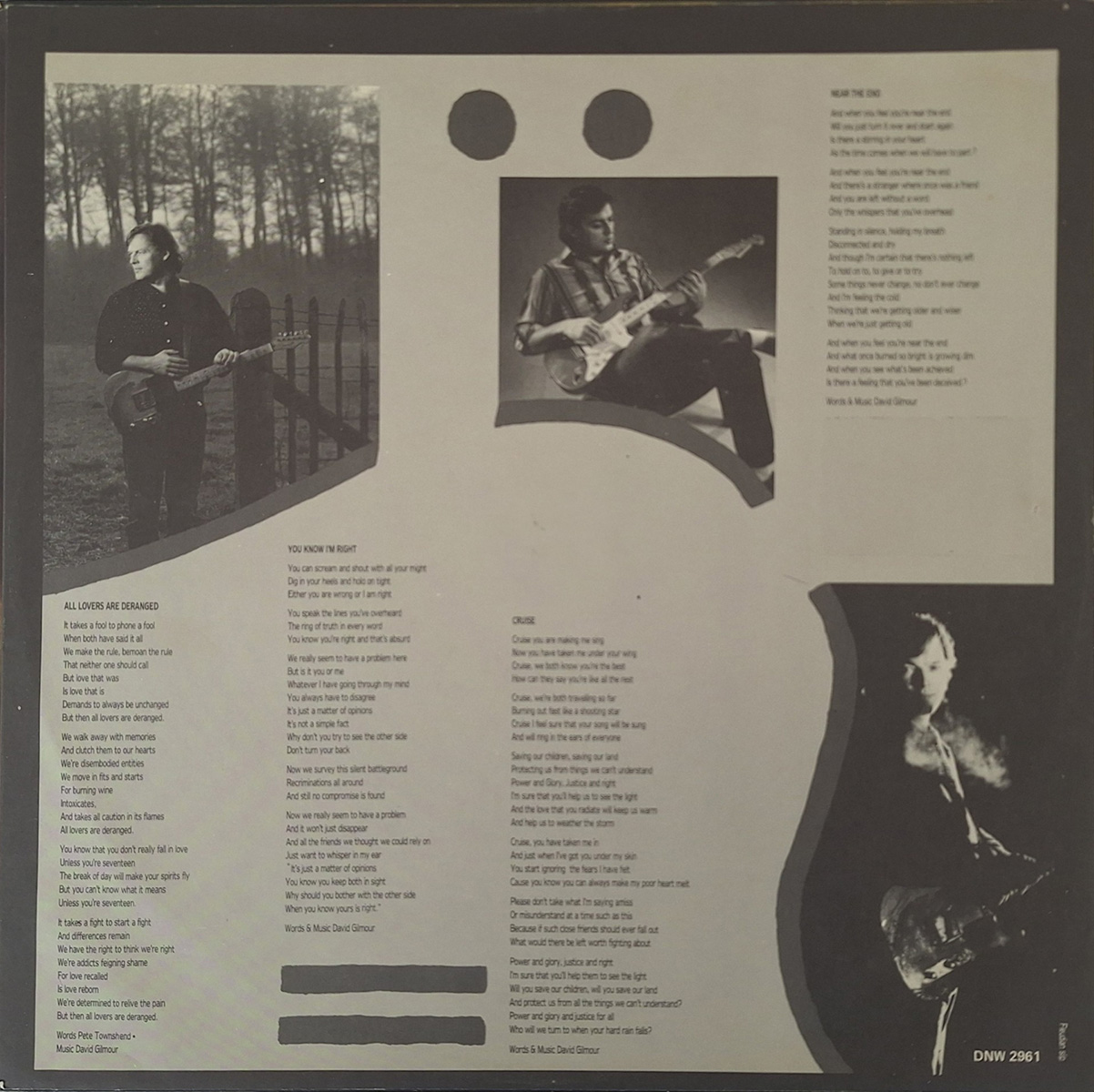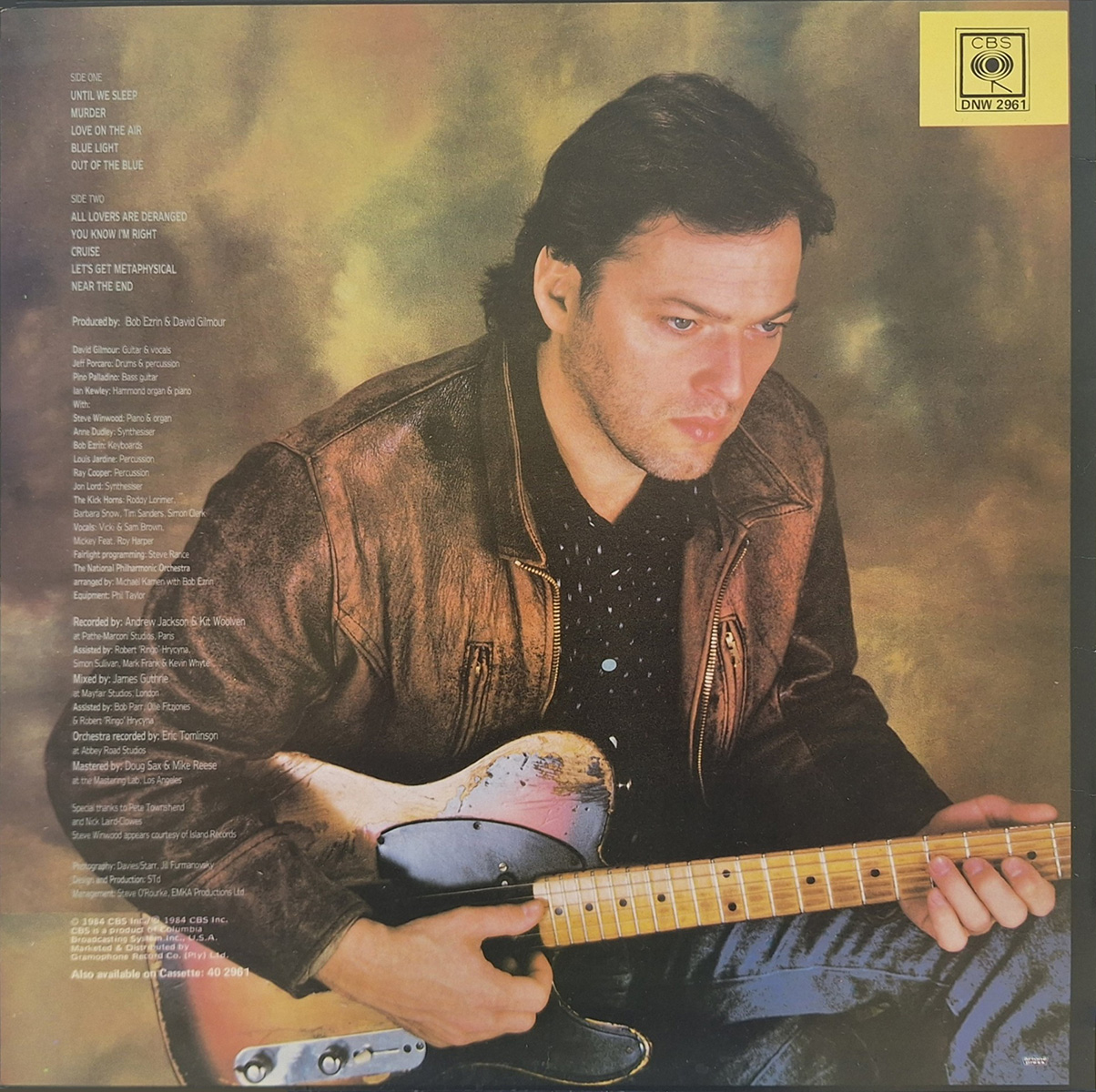 Back Cover: David Gilmour. Song listing. Credits. In the lower right corner, it says "Artone Press."