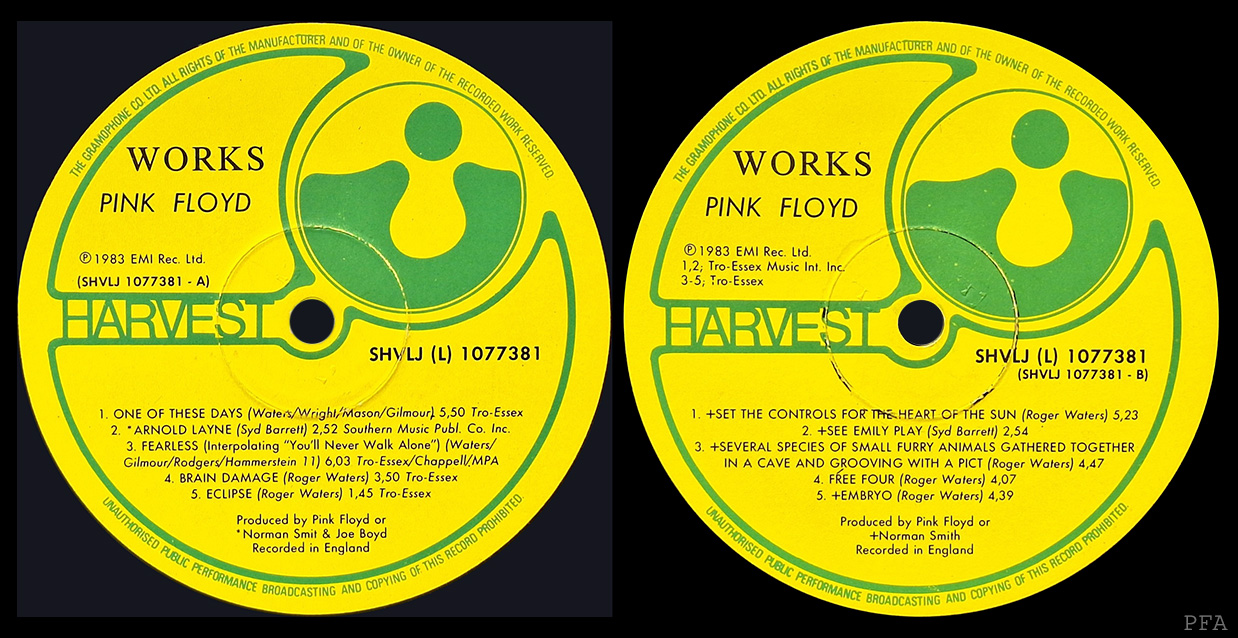 Release Information: Third issue. Library rental copies have been found with stickers on the back cover that say "AVOID" next to the songs Sheep, and Another Brick in the Wall (Part 2), and a "CANCELLED X" sticker on the label.