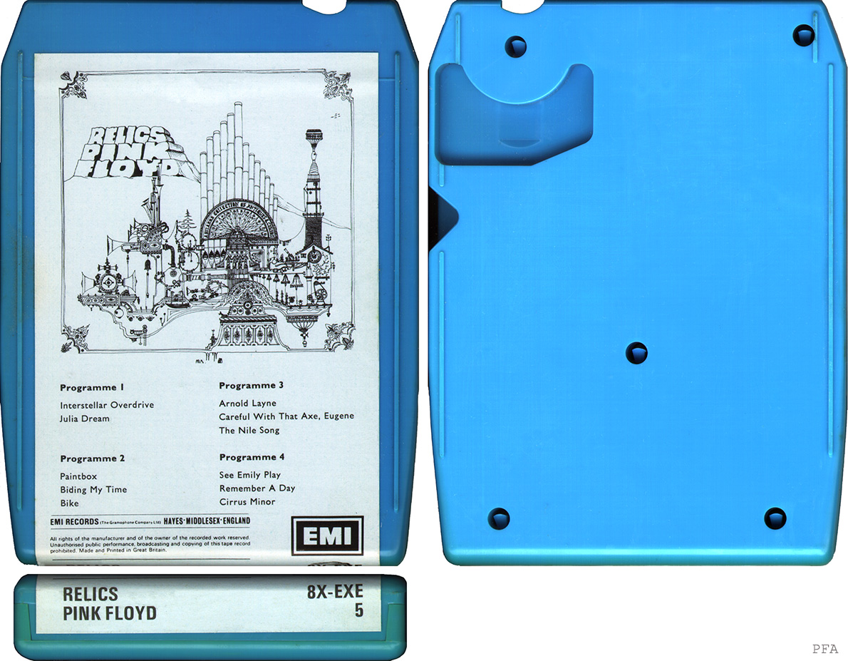 Tape: [front] [back] [spine] Black cart with light blue label. Nick Mason drawing. Song titles.