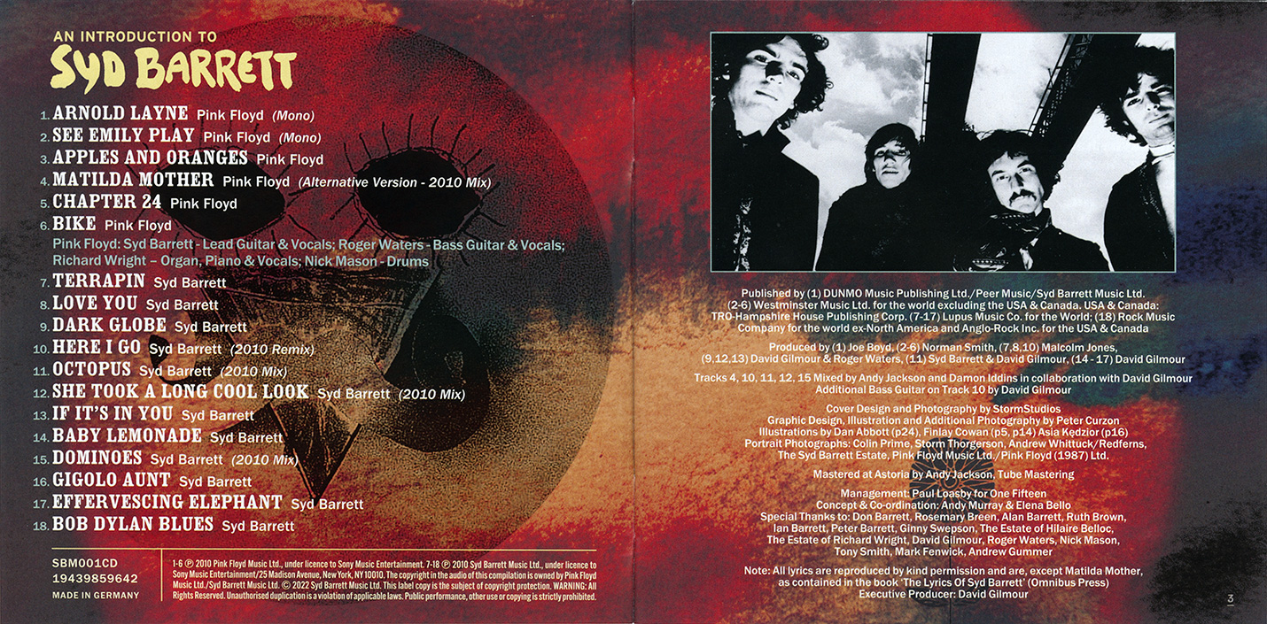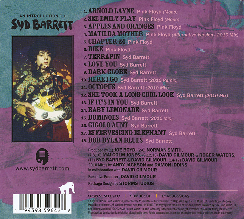 Release Information: 2022 U.S. reissue. A compilation CD of Syd Barrett songs, both with and without Pink Floyd. Includes new remixes by David Gilmour. Made in Germany.
