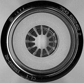 Text around the left edge of the label begins at 6 o'clock, and says: