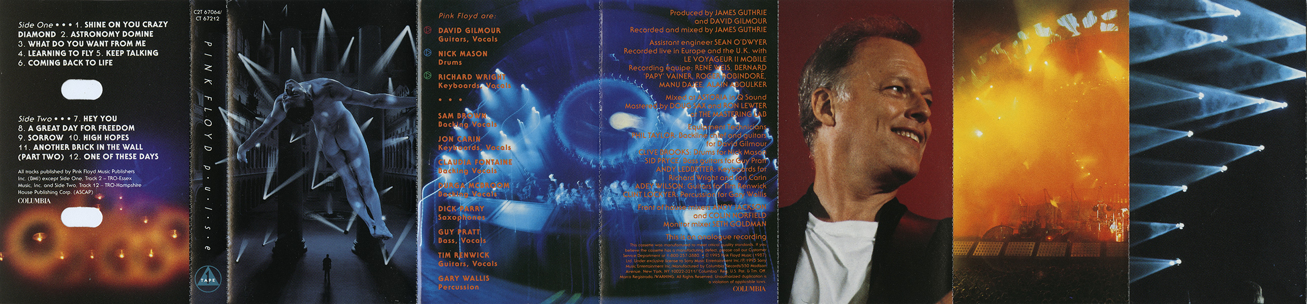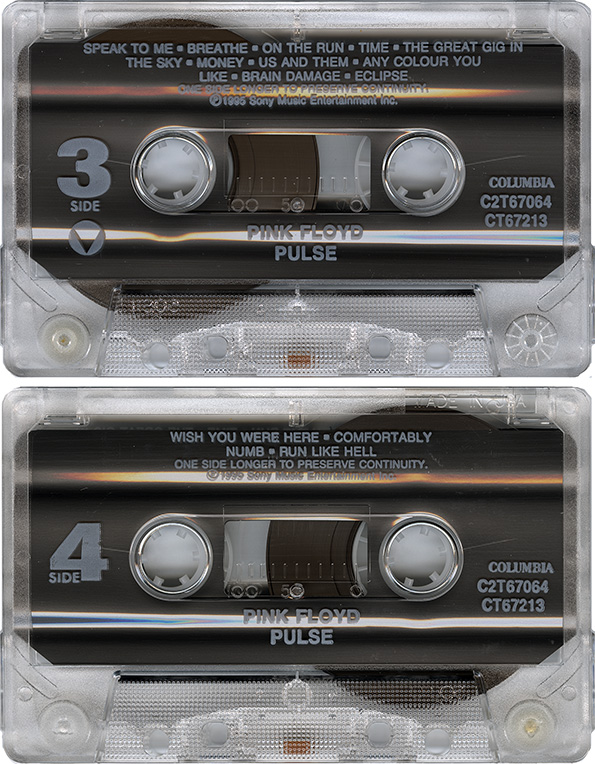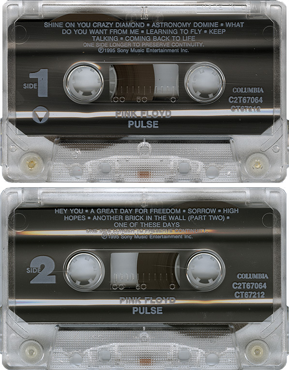 Release Information: A two cassette set that was issued in a 2/3 length longbox case, with a circular sticker on the shrink wrap. The cassettes include an extra song not on the CD (One of These Days), plus an ambient electronic piece (later issues do not include this).