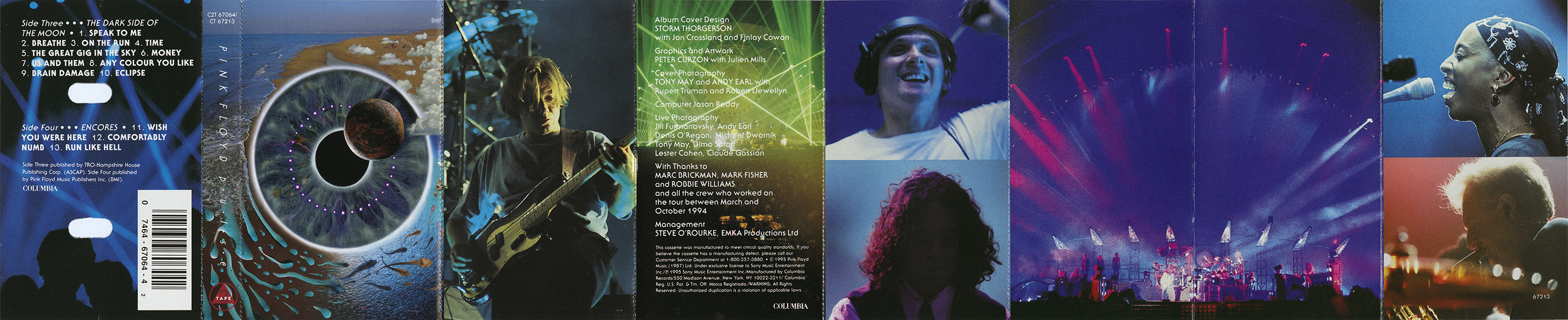 Release Information: A set of two separate cassettes with an extra song not on the album. Sticker on cover says: Live. 15 Classics. Includes: Comfortably Numb, Run Like Hell, Time, Money, Wish You Were Here, Us & Them (Bonus Track). Special package with in-concert photo fold-outs. Digitally recorded.