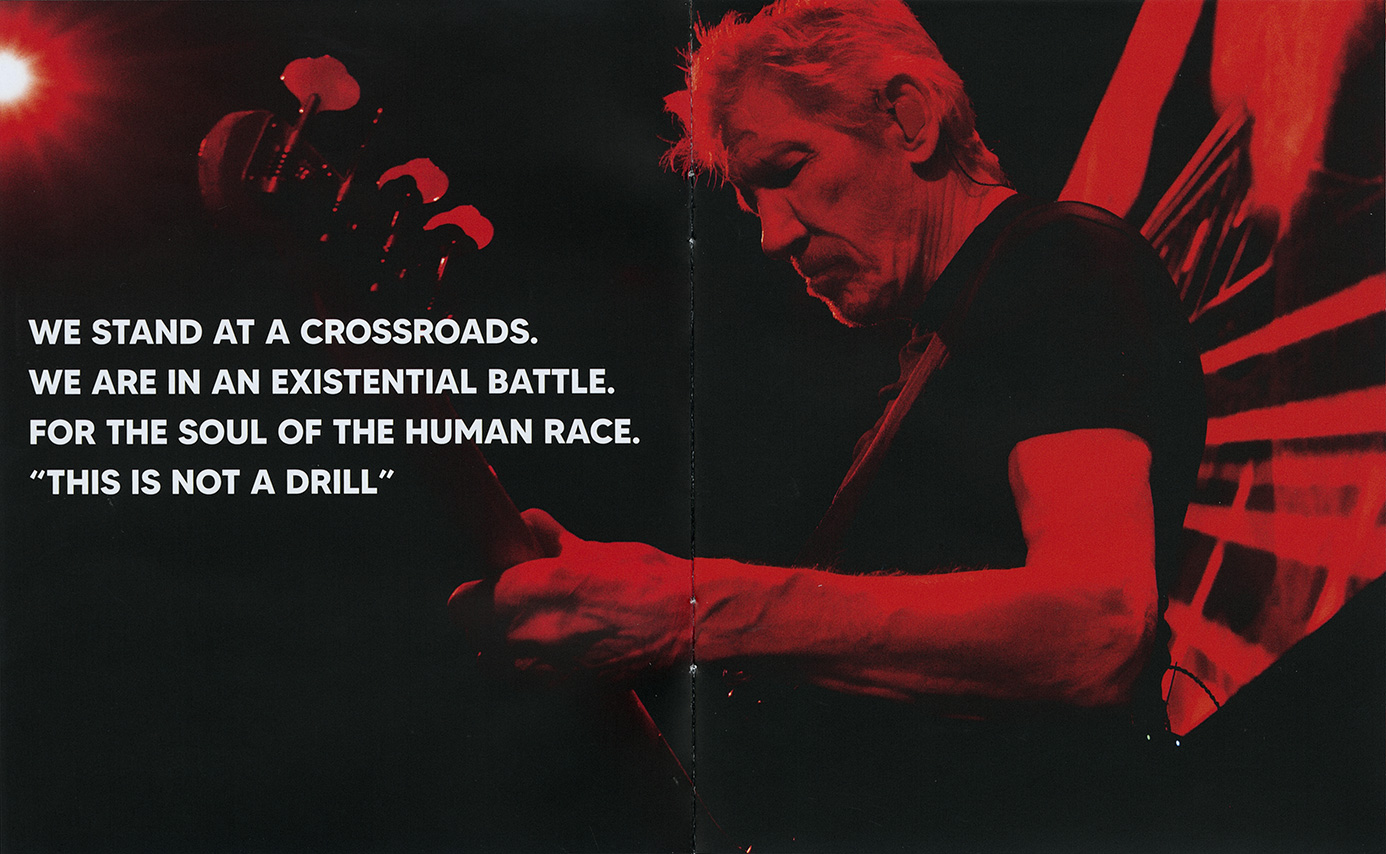 Front Cover: Title and a picture of Roger Waters over the concert.