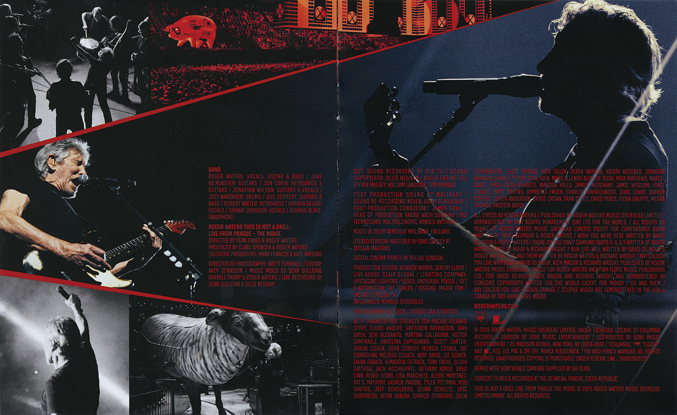Slip Case: Blue-ray is issued in a slip case that is open at the top and bottom. Title and a picture of Roger Waters over the concert on the front. Credits on the back.