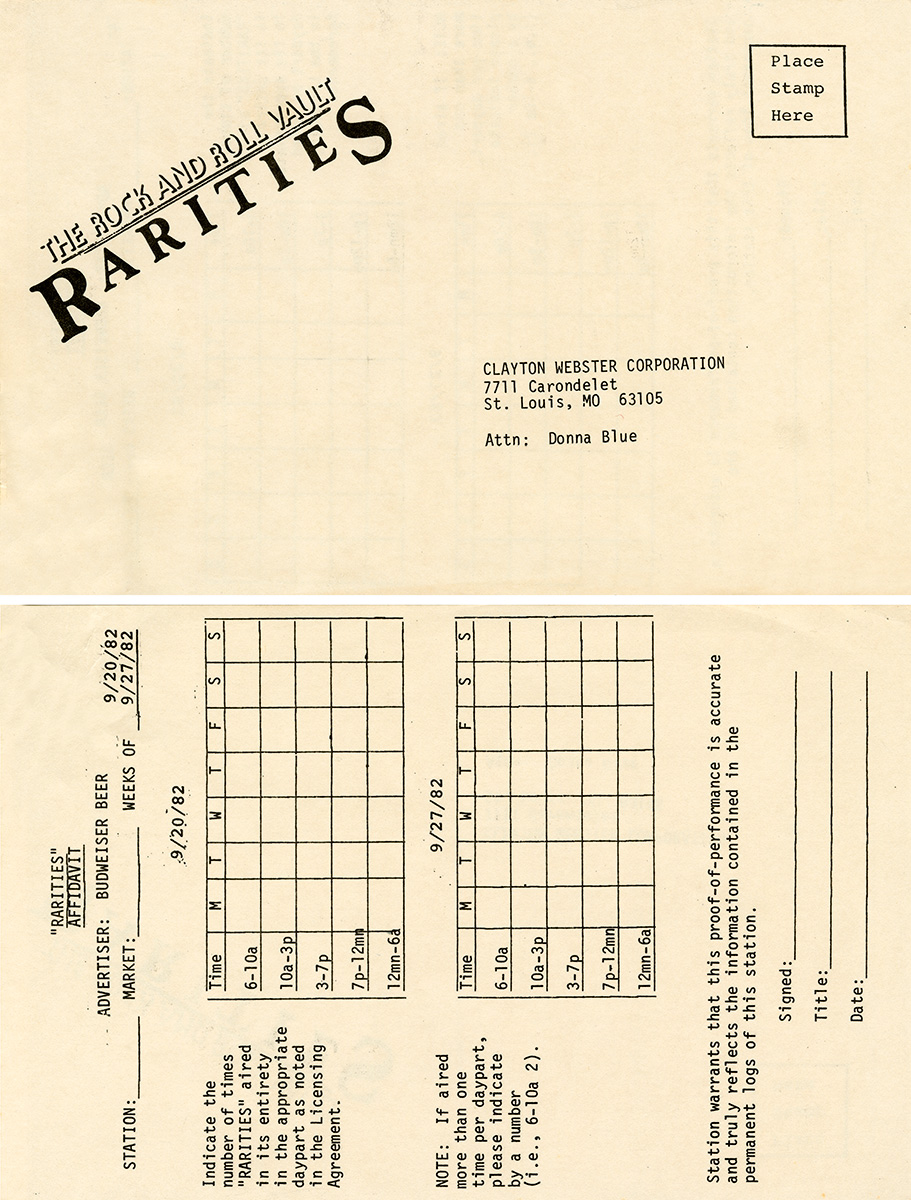 Release Information: A 52-hour 52 LP radio show covering the history of rock and roll. Silver annivbersary edition. Hosted by Bill Drake. Features the Pink Floyd during hour 48. Cue sheets.