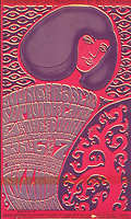 BG 82-1 - Byrds / Loading Zone / LDM Spiritual Band, September 7-9, 1967 (art by Jim Blashfield), postcard, surface tear on back, tape damage on top and bottom edges, $10