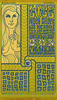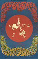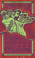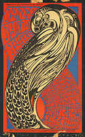 BG 104-1 - Big Brother & the Holding Company / The Electric Flag / The Youngbloods / Ultimate Spinach, January 25-27, 1968 (art by Jack Hatfield), postcard, tape damage on top and bottom edges, $10
