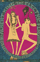 BG 83-1 - Electric Flag / American Music Band / Mother Earth / LDM Spiritual Band, September 14-16, 1967 (art by Jim Blashfield), postcard, surface tear on back, tape damage on top and bottom edges, $10