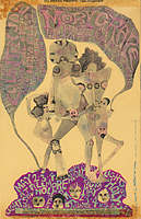 BG 118-1 - Moby Grape / The Hour Glass/ The United States of America / Country Joe and the Fish, May 2-4, 1968 (art by Mari Tepper), postcard, tape damage on top and bottom edges, $10