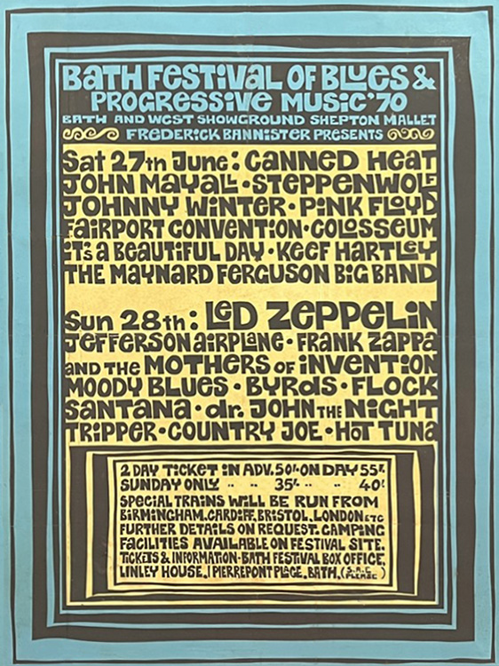 Notes: An art poster by OOOZDESIGN for the Bath Festival of Blues & Progressive Music held on June 27-28, 1970.