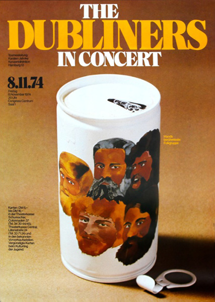 Notes: A poster for The Dubliners in Concert at the Congress Centrum in Hamburg, West Germany on November 8, 1974.