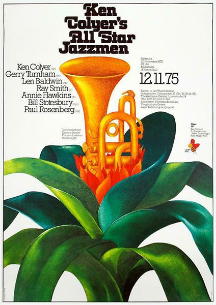 Notes: A poster for Ken Colyer's All Star Jazzmen at the Musikhalle in Hamburg, West Germany on November 12, 1975.