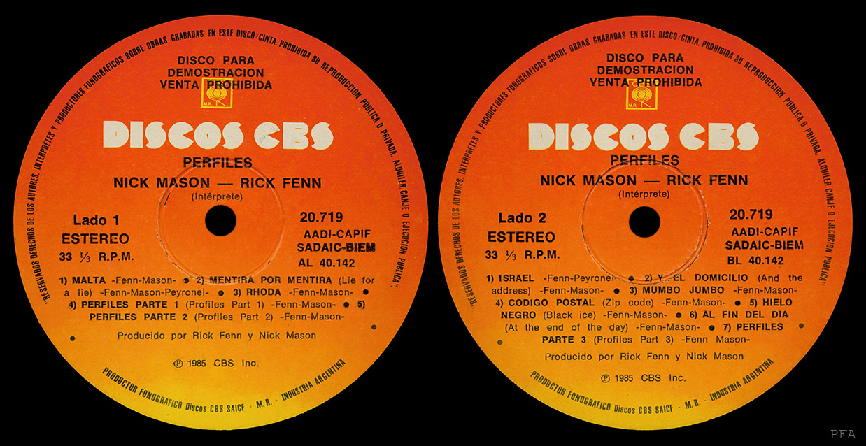 Spine: NICK MASON / RICK FENN - PERFILES COLUMBIA 20.719