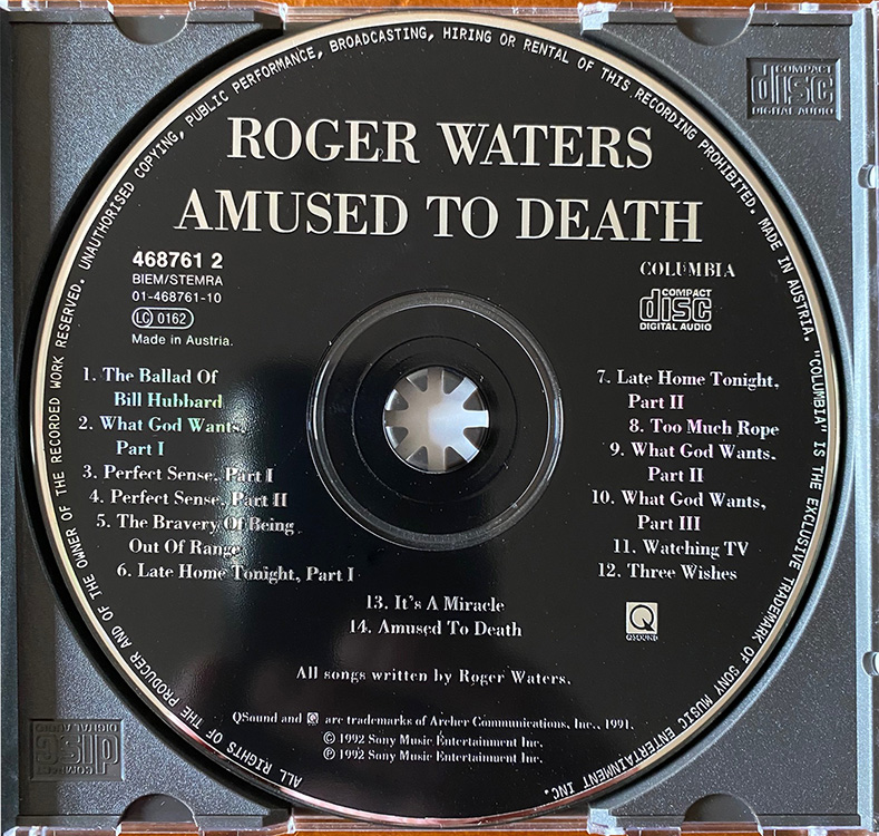 Title: Amused to Death (Columbia Records 1st issue)