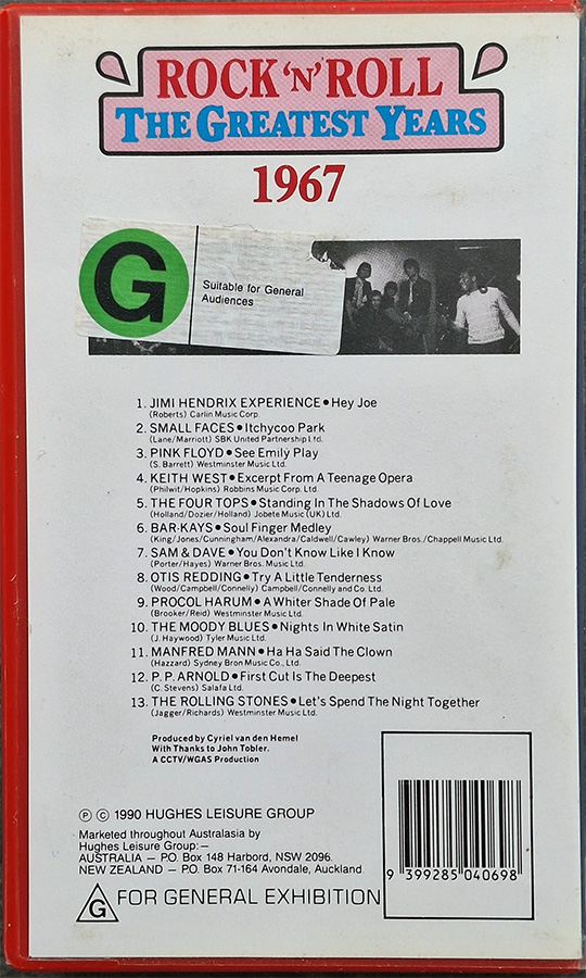 Release Information: Australian VHS release. Includes Pink Floyd performing Astronomy Domine, and Interstellar Overdrive.