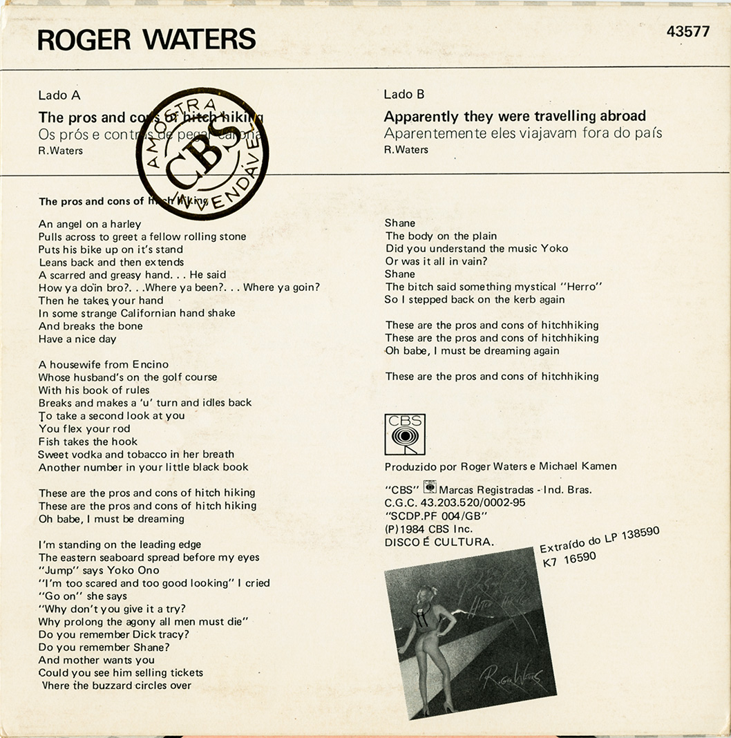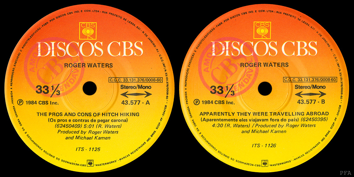 Labels (promo): Orange Discos CBS labels. "AMOSTRA CBS INVENDAVEL" in a round red stamp on both labels.
