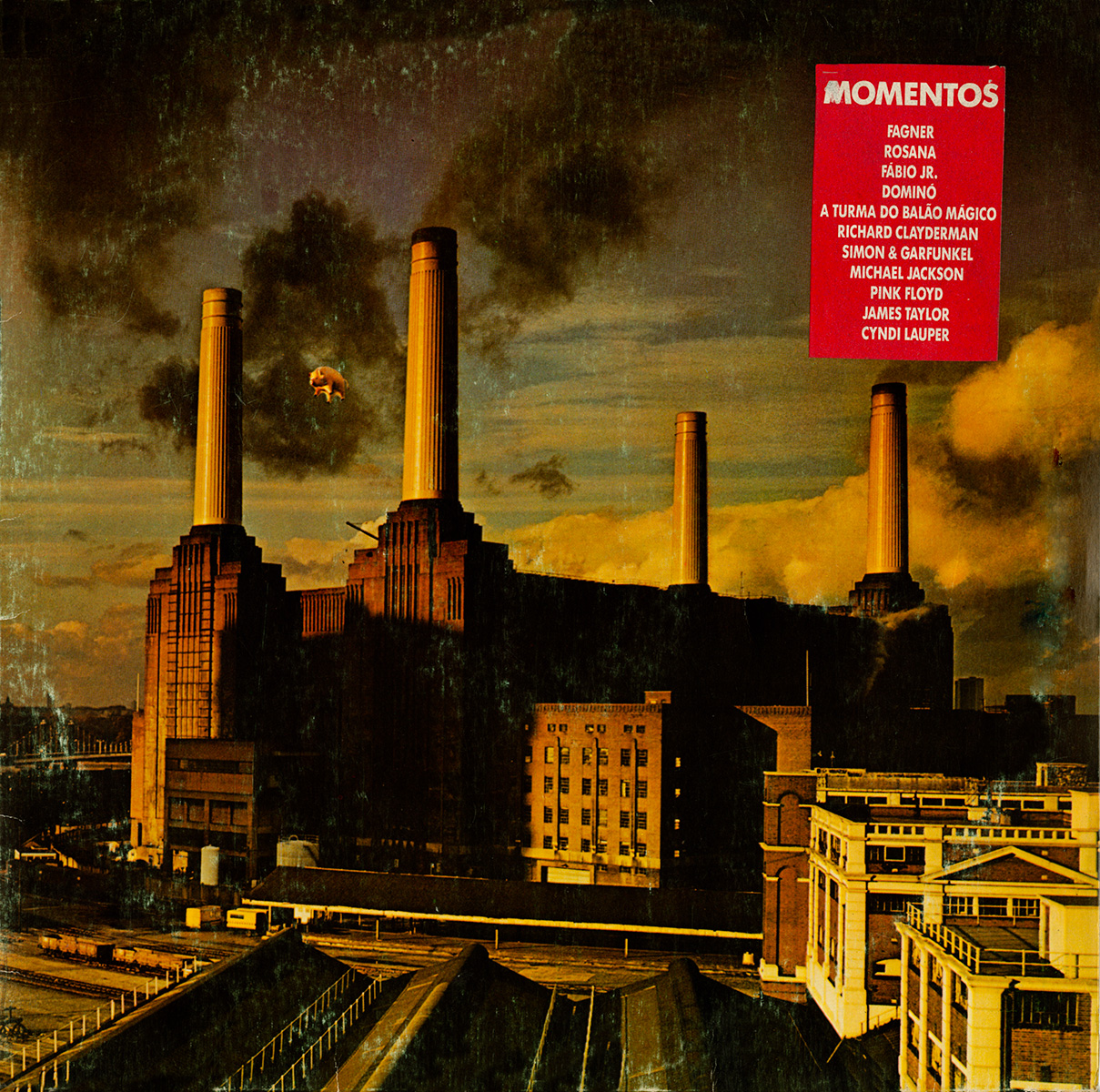 Front Cover: Battersea Power Station with pig. Red Momentos sticker on cover.