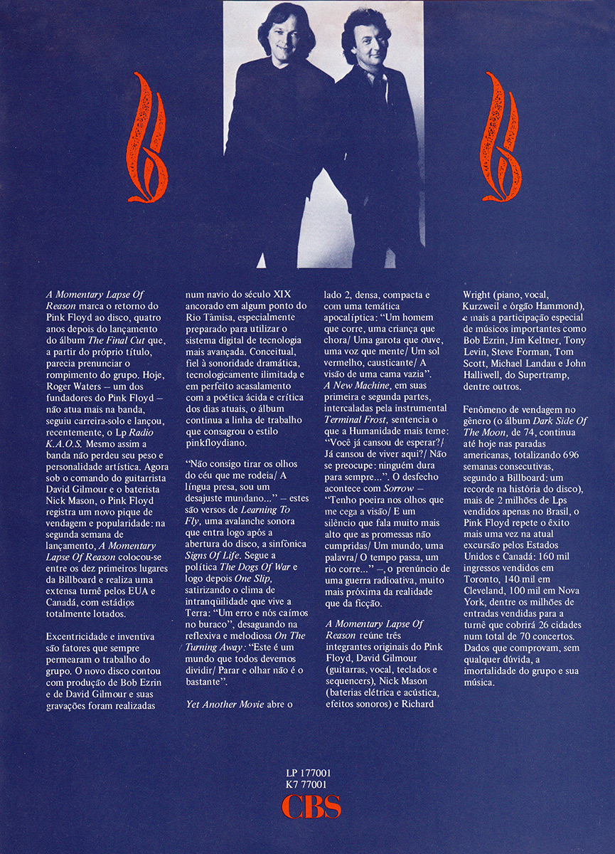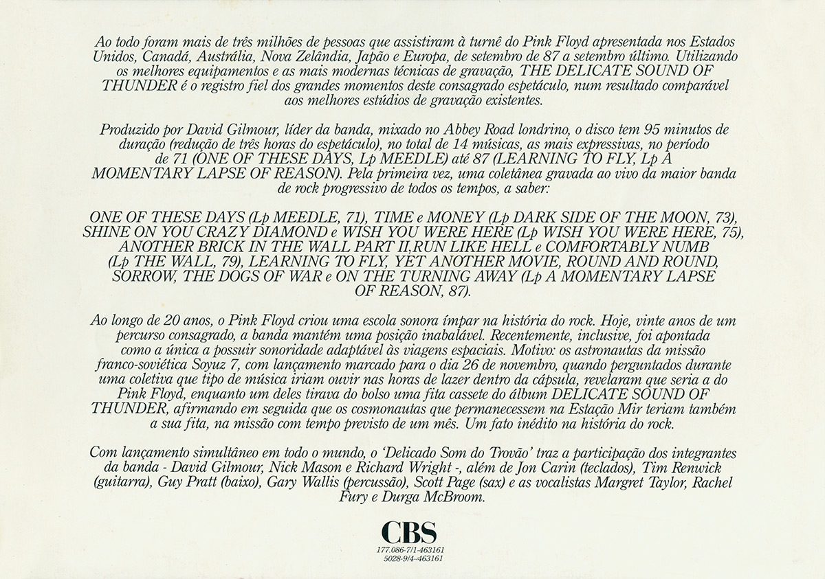 Inside Cover: Pictures of Pink Floyd performing. Credits.