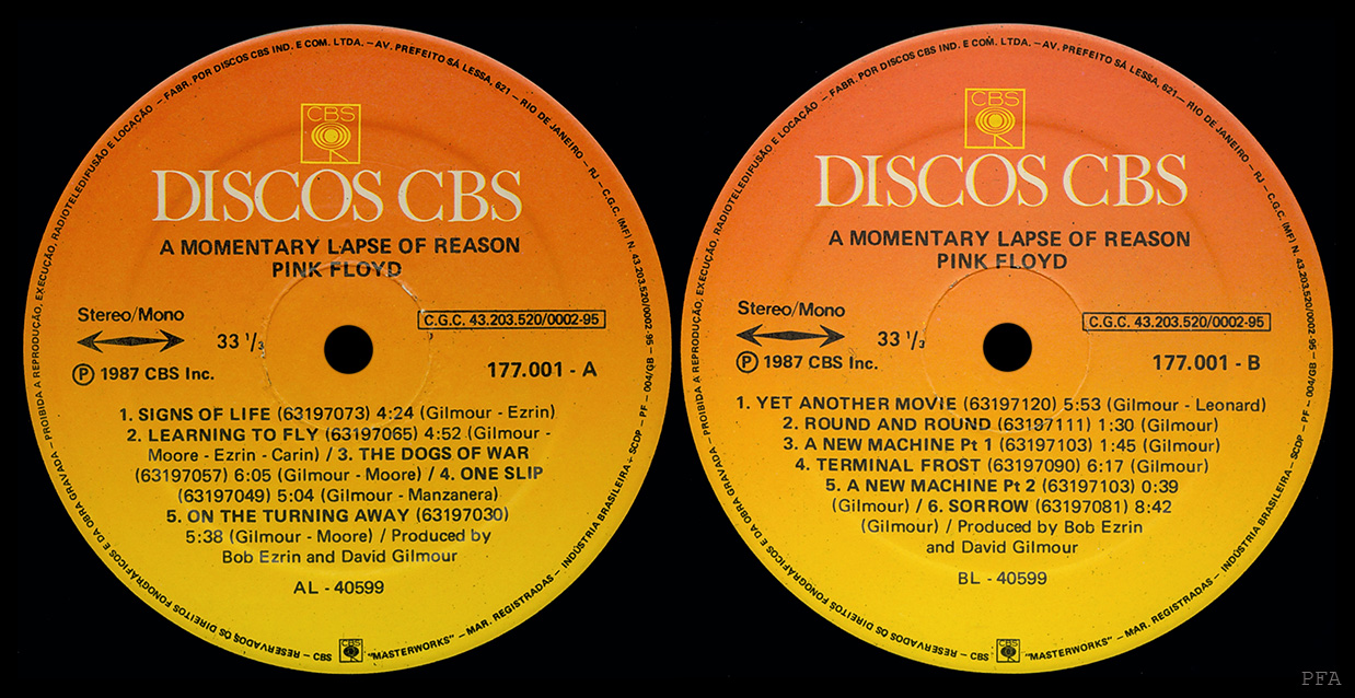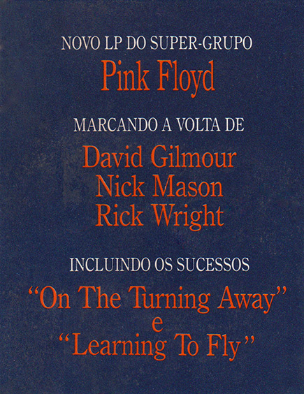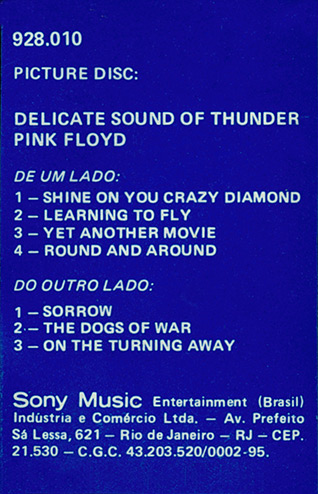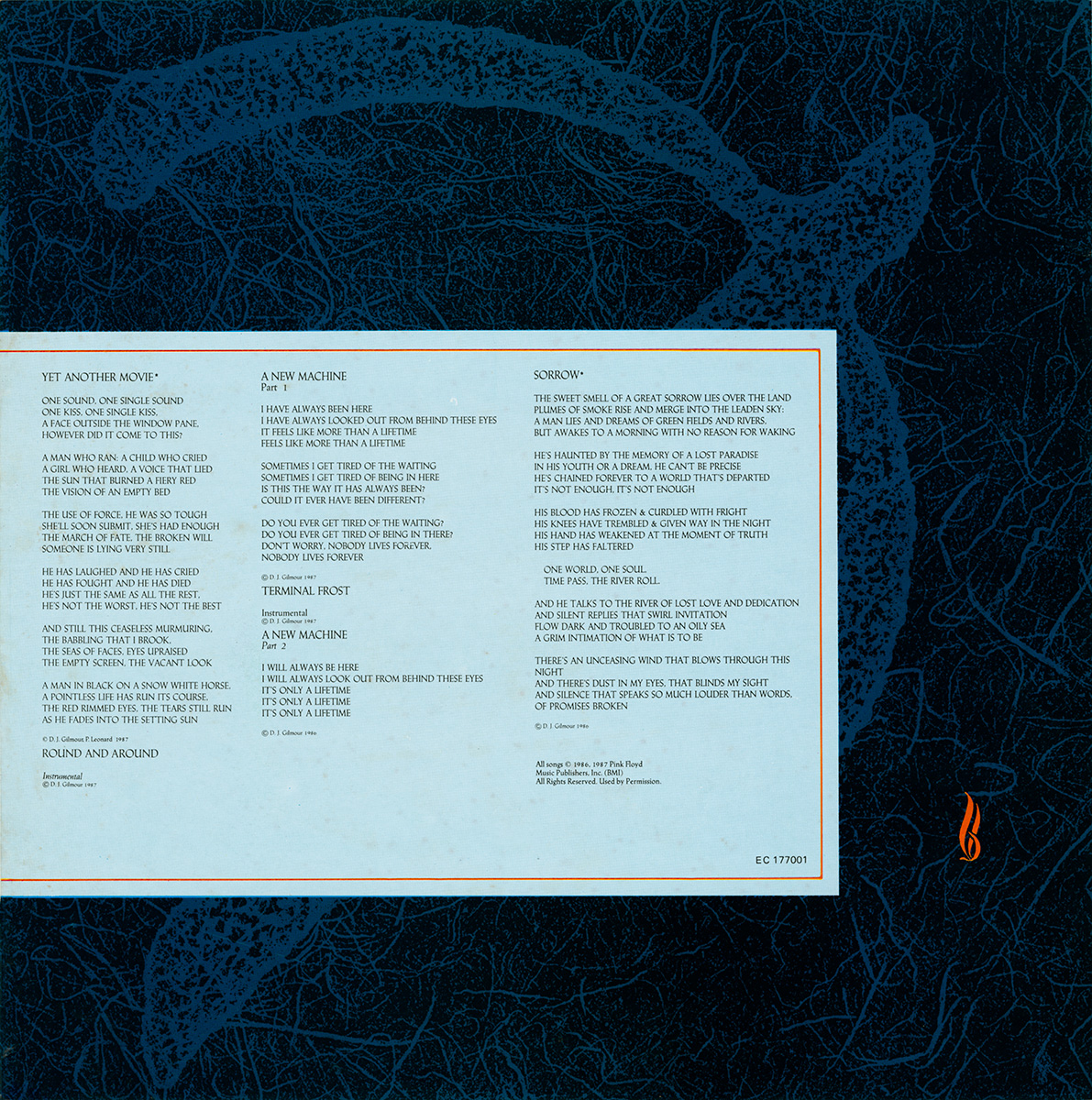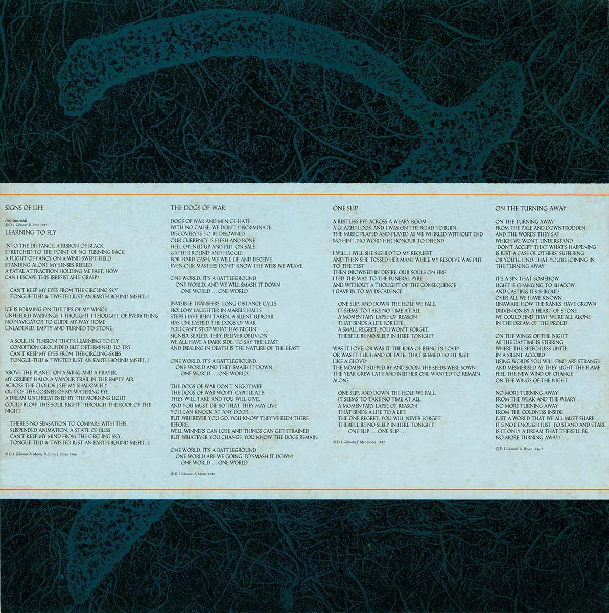 Release Information: A limited edition release on blue vinyl. Includes an insert with lyrics. Shortened version with songs edited from CD release (Poles Apart, Marooned, Wearing the inside Out, Coming Back to Life, Lost for Words, and High Hopes).