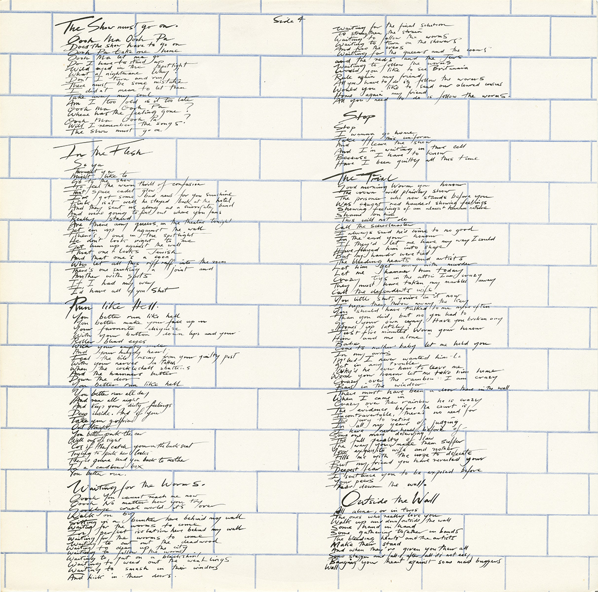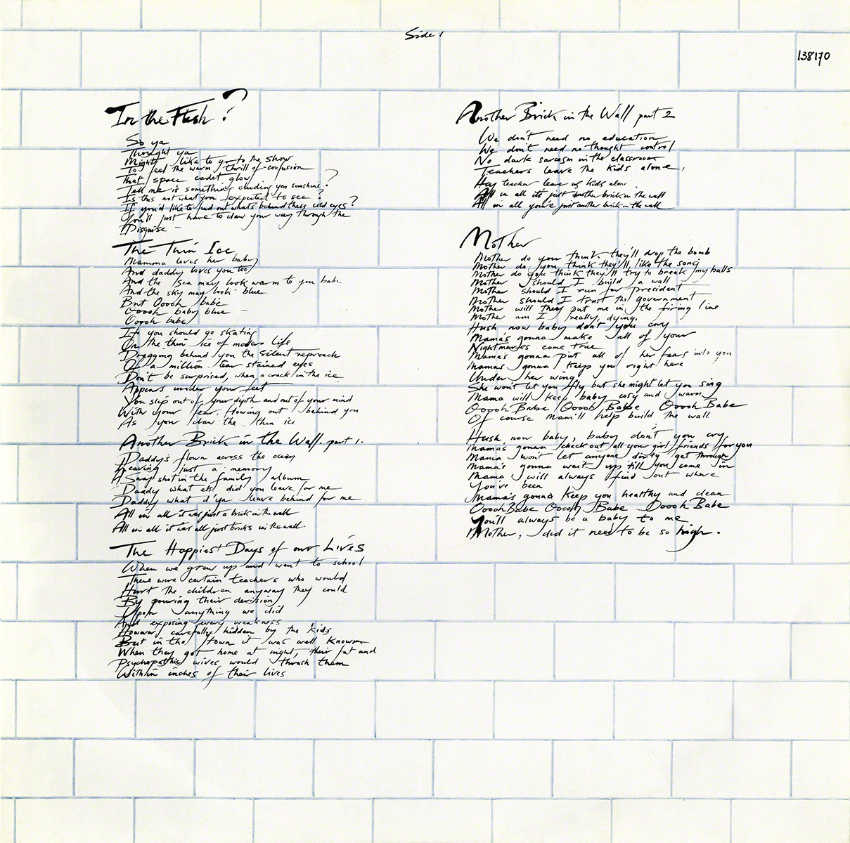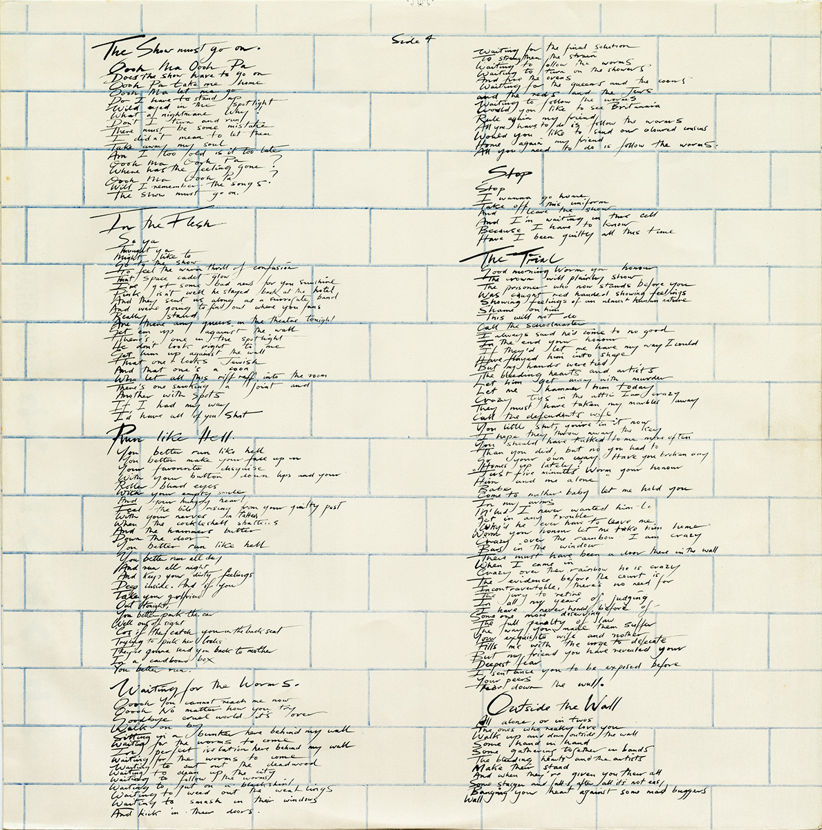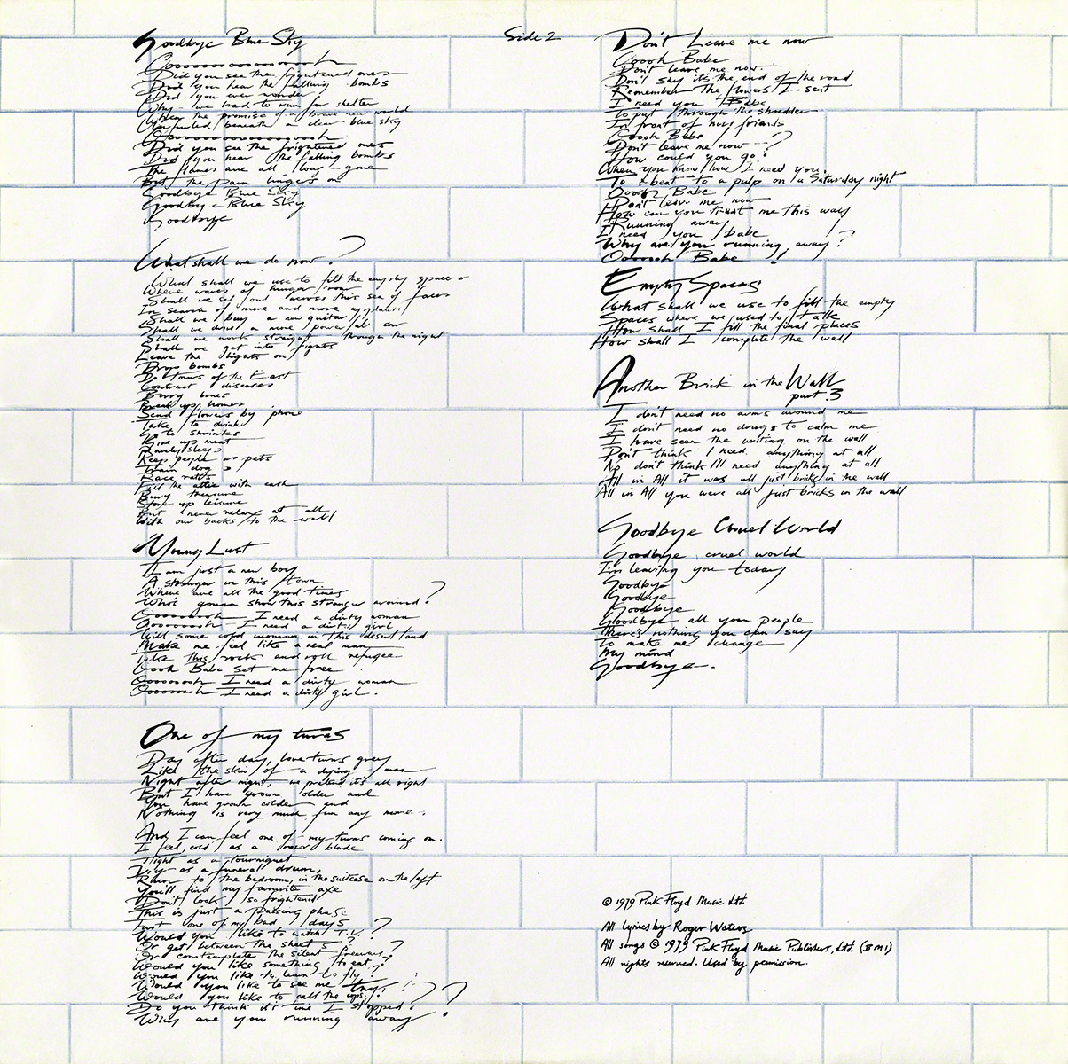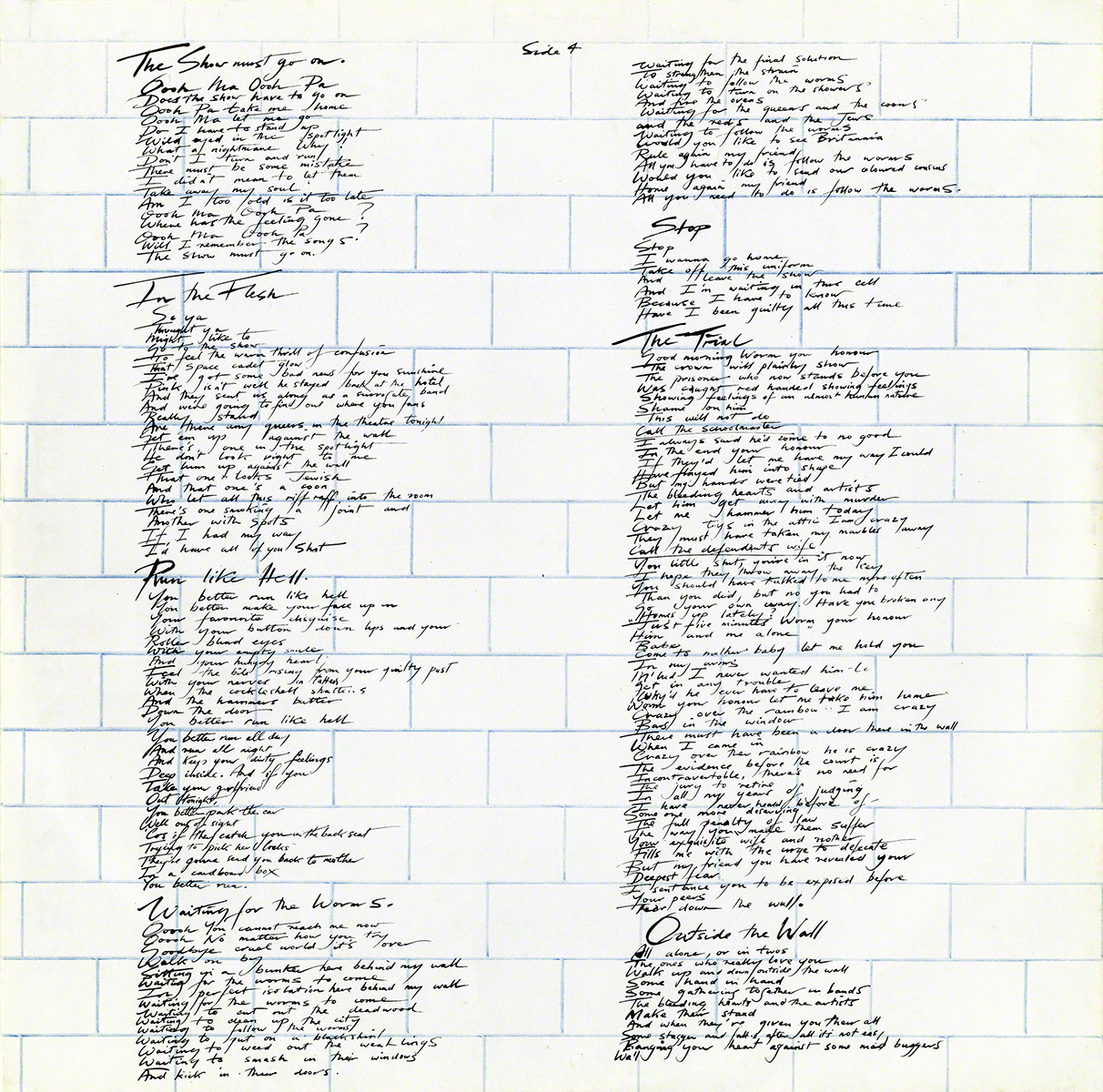 Inner Sleeves: [1 - front] [1 - back] [2 - front] [2 - back] White brick wall with lyrics.