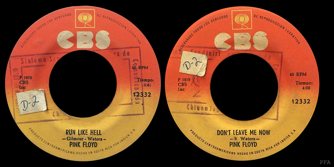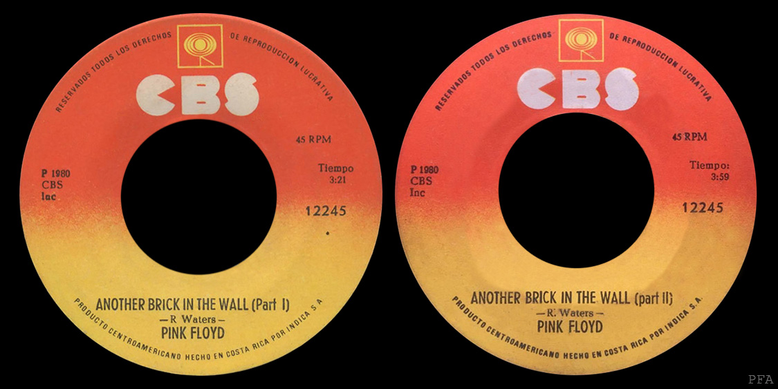 The following is a discography of vinyl singles (45s) that have been released in Costa Rica by Pink Floyd.