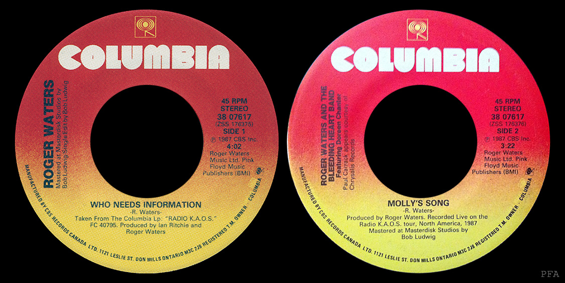 Release Information: Canadian issue. Side two features a live recording of Roger Waters with the Bleeding Heart Band, guest vocalist Paul Carrick.