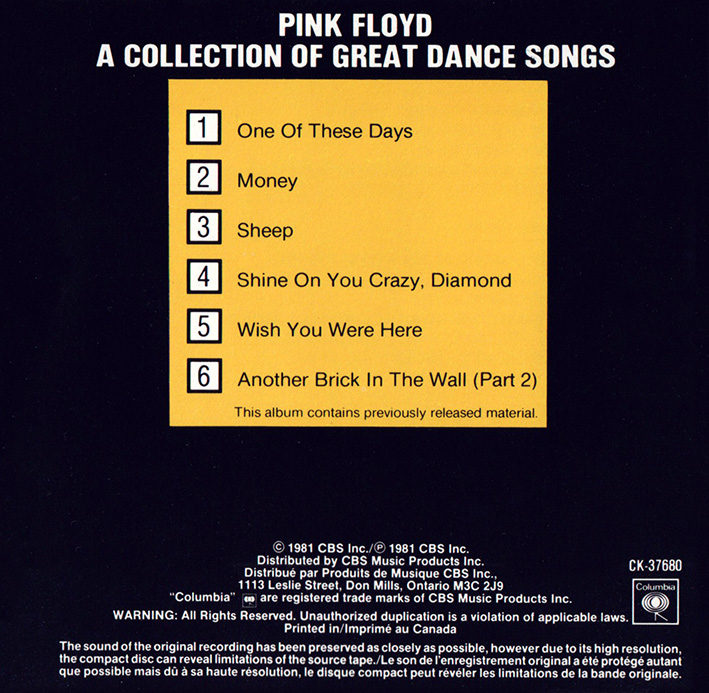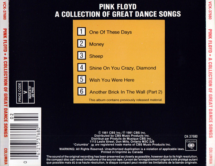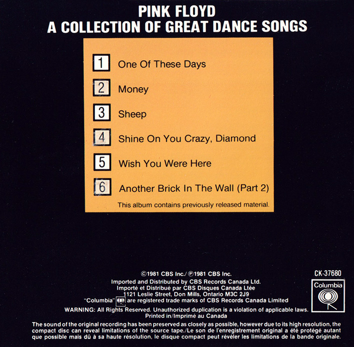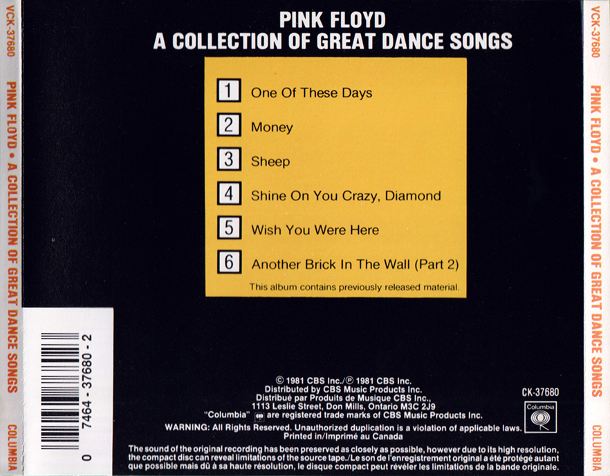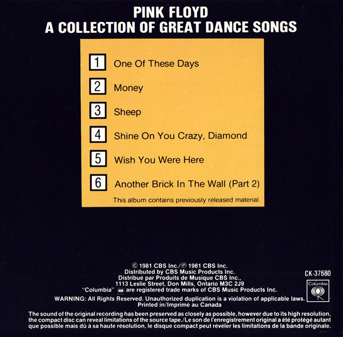 Release Information: Canadian double CD of Pink Floyd grestest hits. Issued in a slip case.
