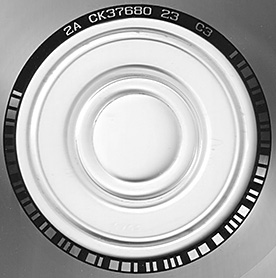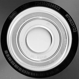 Text across the edge of the label starts at 6 o'clock, and says: