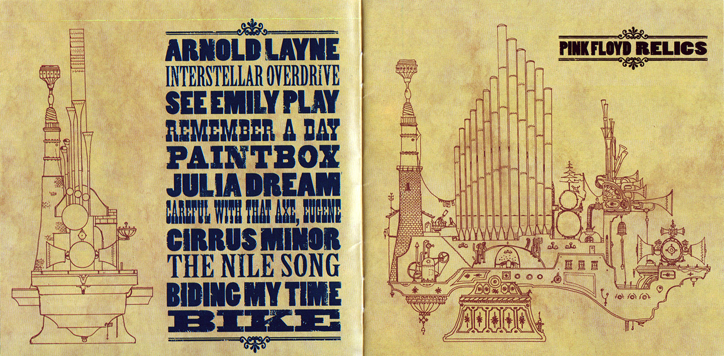 "PINK FLOYD: RELICS" printed in white letters on a wide band around the center hole.