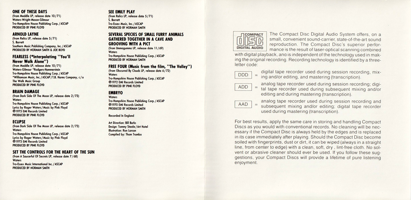 Cover Sticker: Issued with a red cover sticker that says "ECHOES - THE BEST OF PINK FLOYD - The definitive Pink Floyd Collection spanning their entire career - 26 remastered tracks from the original analog tapes - Features material previously unreleased on CD - 2 1/2 hours of their greatest music sequenced by the band as one continuous experience."