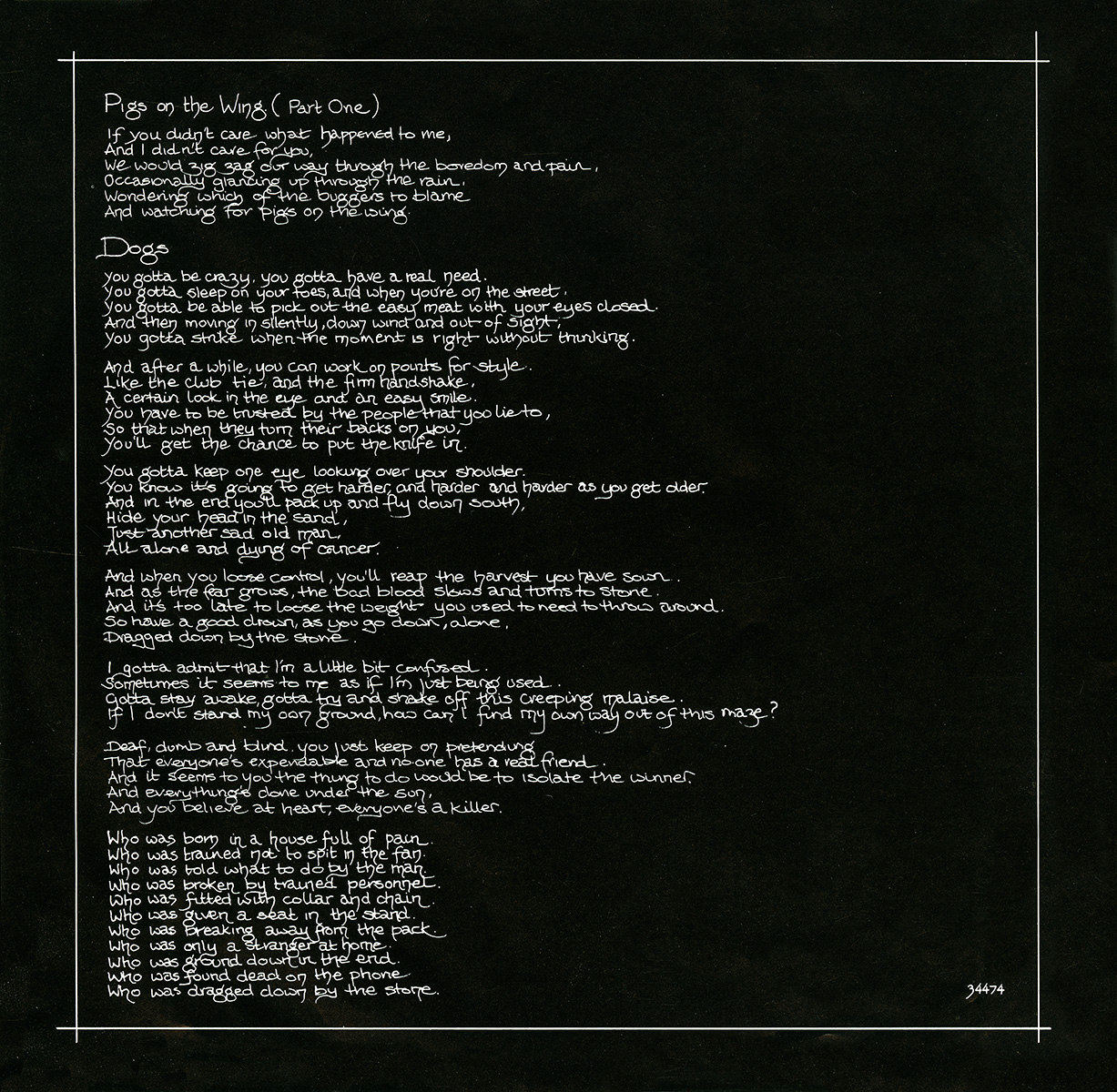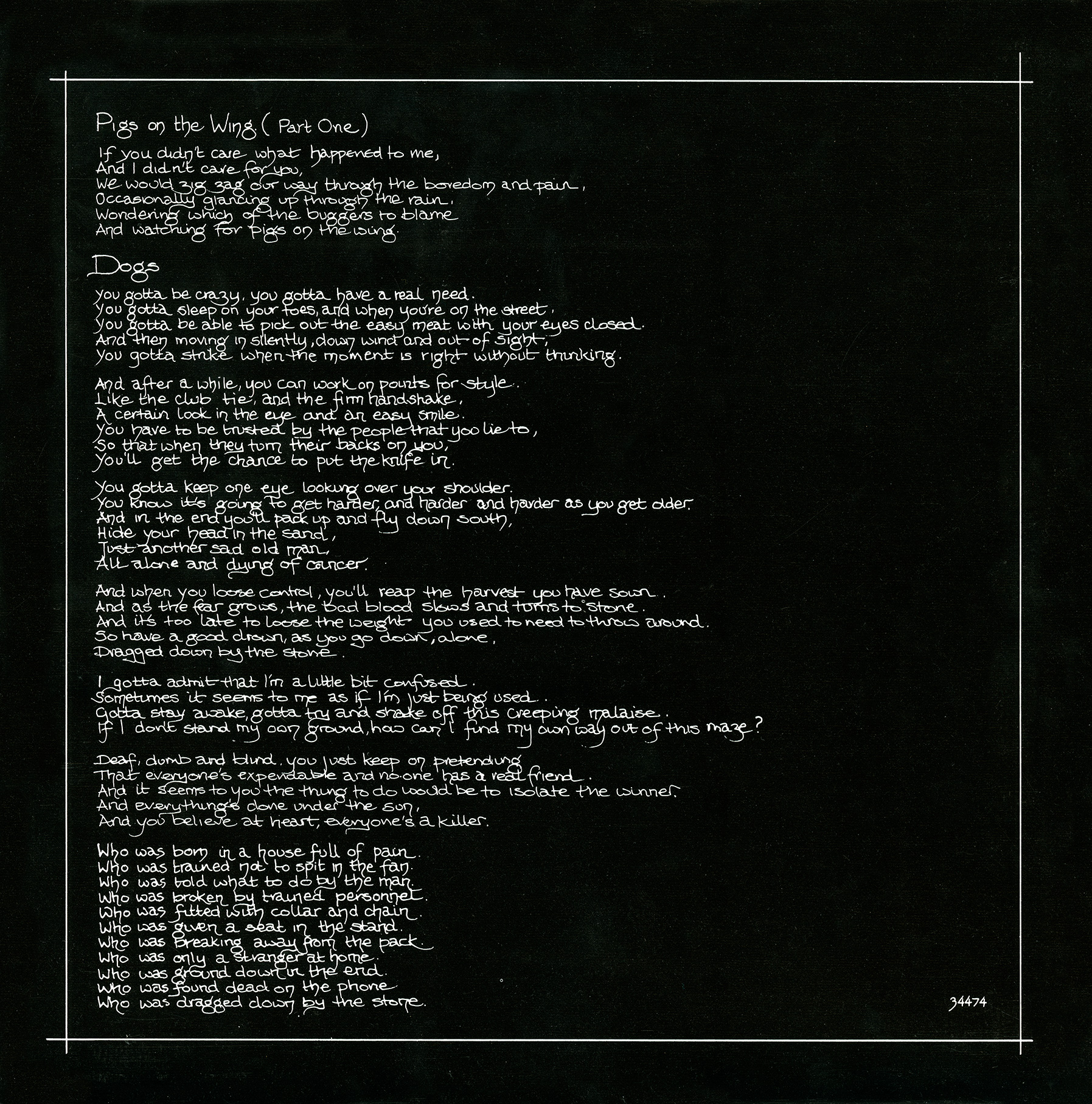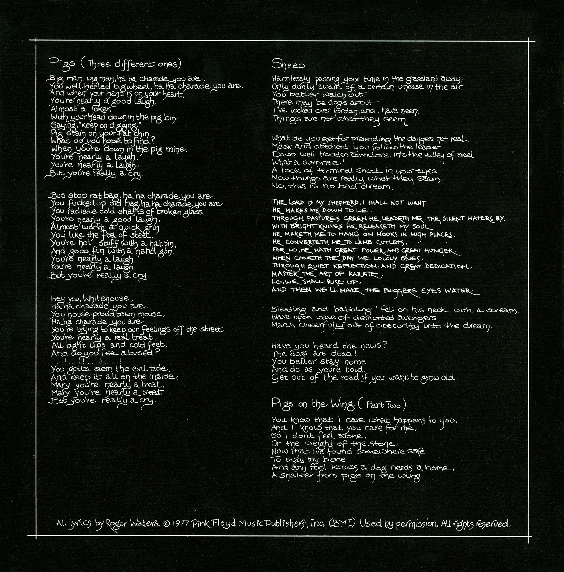 Back Cover: Battersea Power Station. Song listing. Credits.