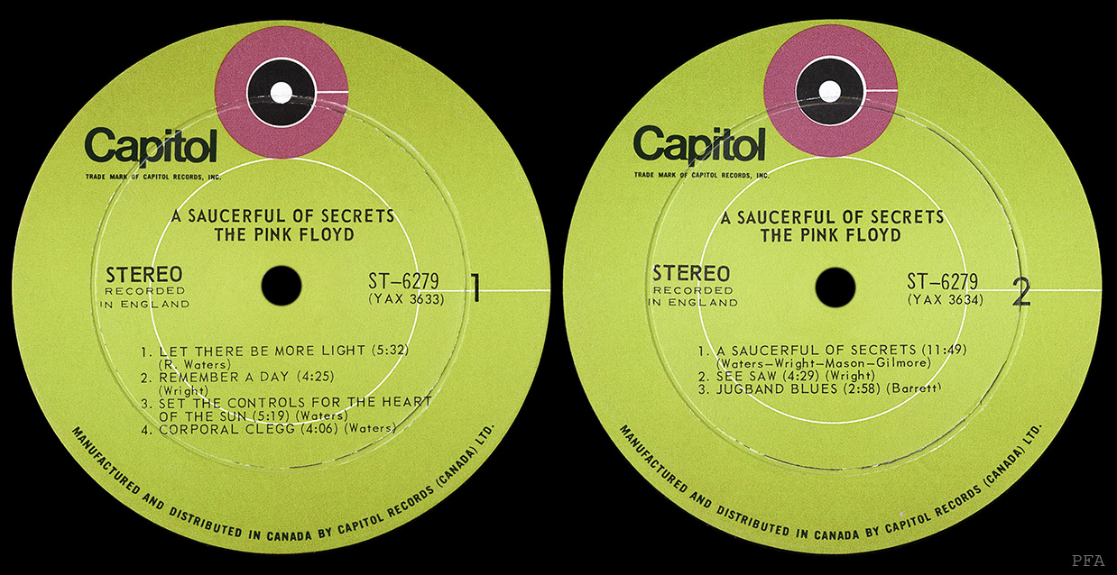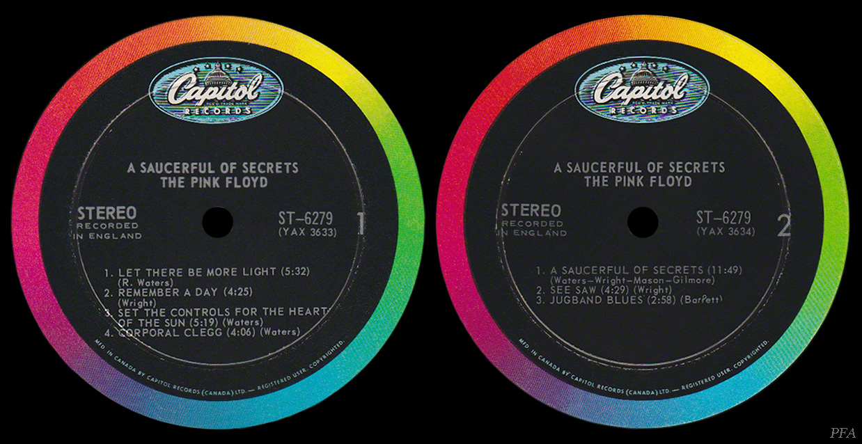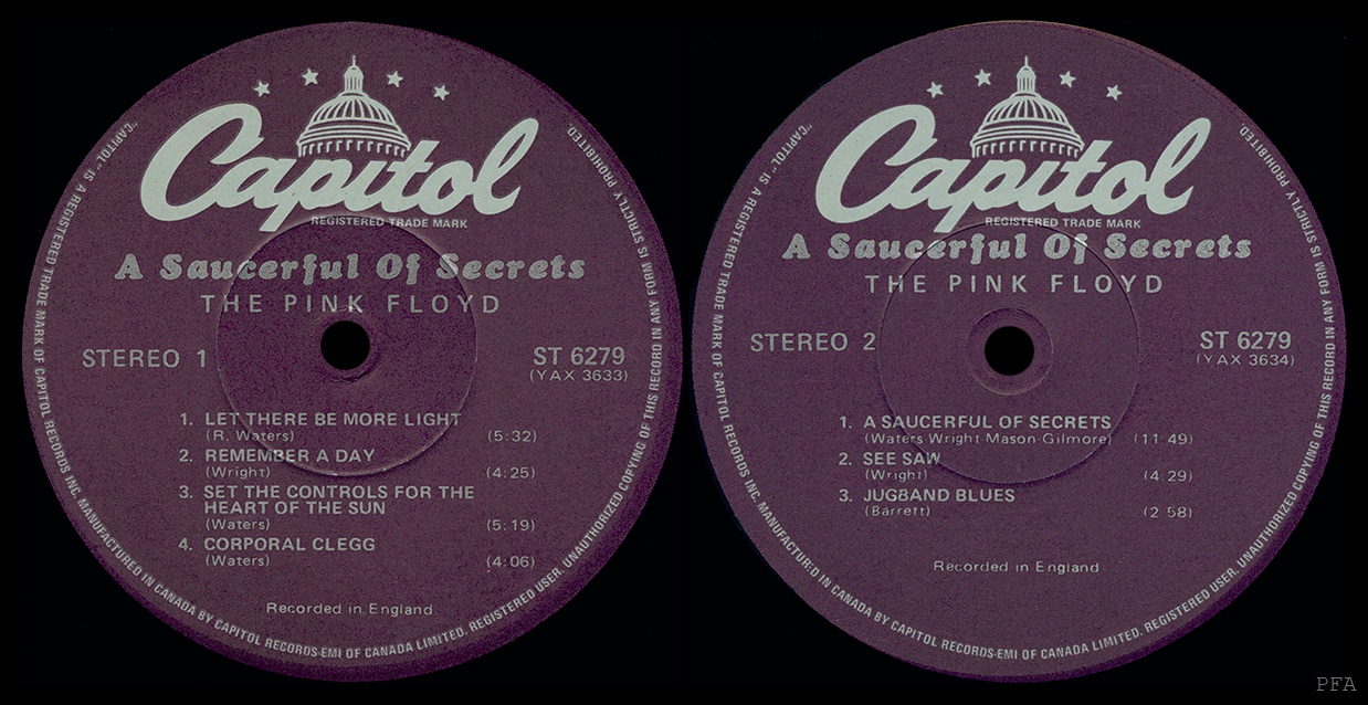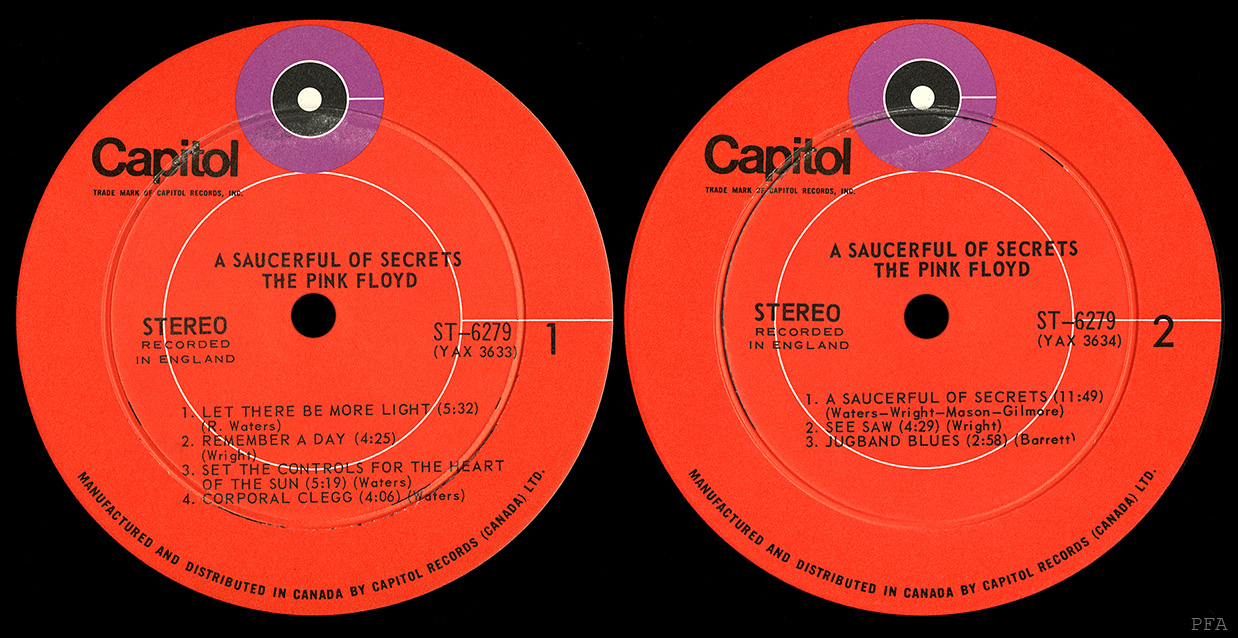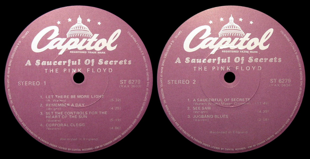 Title: A Saucerful of Secrets (Capitol Records-EMI of Canada Limited 6th issue)