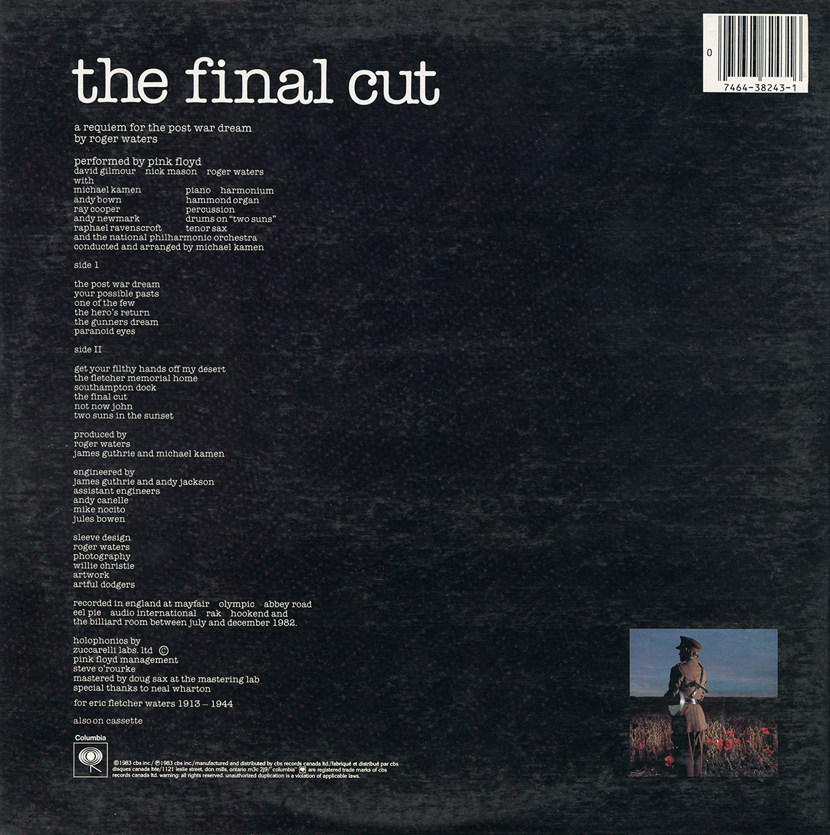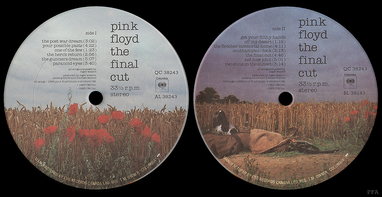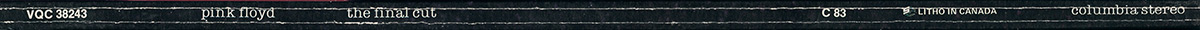 Spine: VQC 38243 pink floyd the final cut C83 S Litho in Canada columbia stereo.