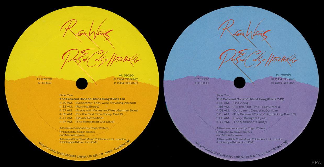 Spine: FC 39290 ROGER WATERS THE PRROS AND CONS OF HITCH HIKING E84 LITHO IN CANADA COLUMBIA STEREO